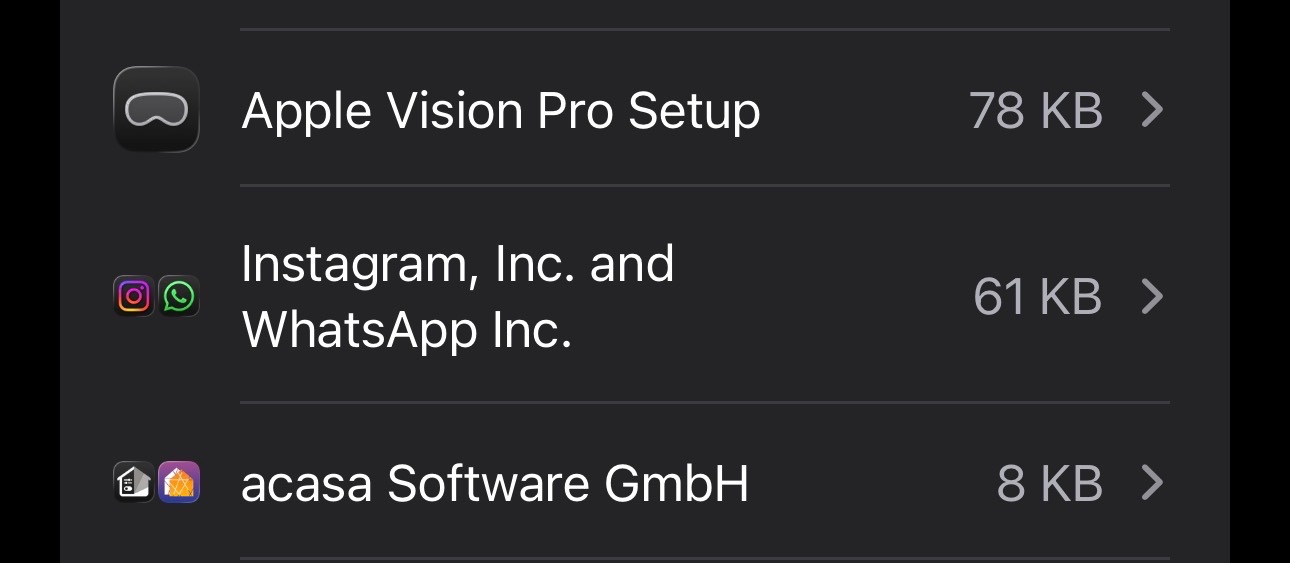 Apple Vision Pro Setup showed up under General>About>iPhone storage
