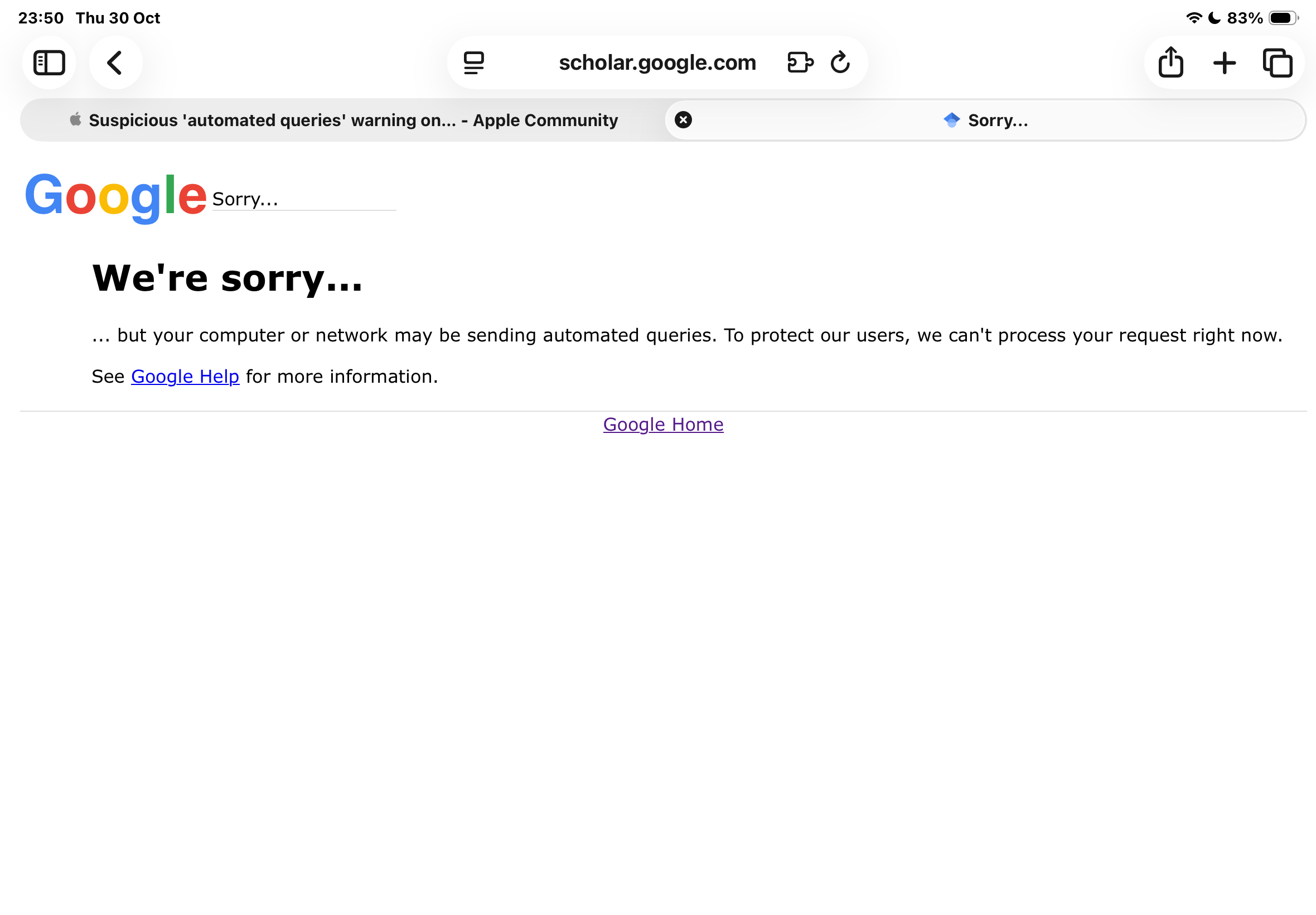 I’m currently able to access Google Scholar with Private Relay enabled too, so that is clearly not a hard block.