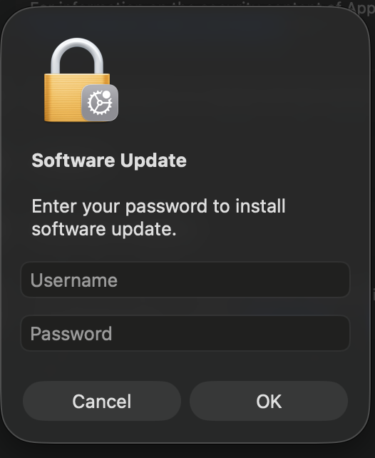 Yes, I get a prompt when attempting to download macOS Tahoe 26.0.1. I have never been asked for a password in the past when downloading updates, so why now? See screen shots below. Based on the issues that I'm seeing it appears there is a systemic issue with update 26.0.1. I appreciate your feedback.