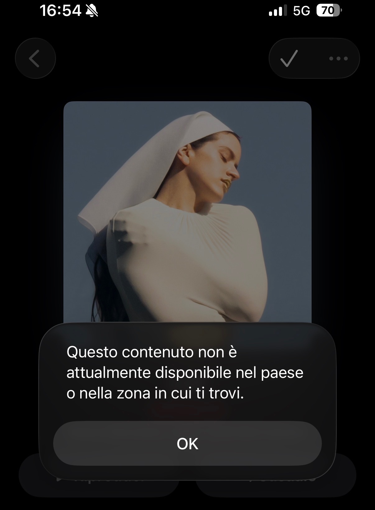 An already released album is unavailable in my country (Italy). You can listen to it on every other platform. That’s embarassing.