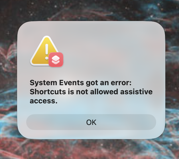 Adding Shortcuts, Script Editor and Automator to Accessibility and switched them on