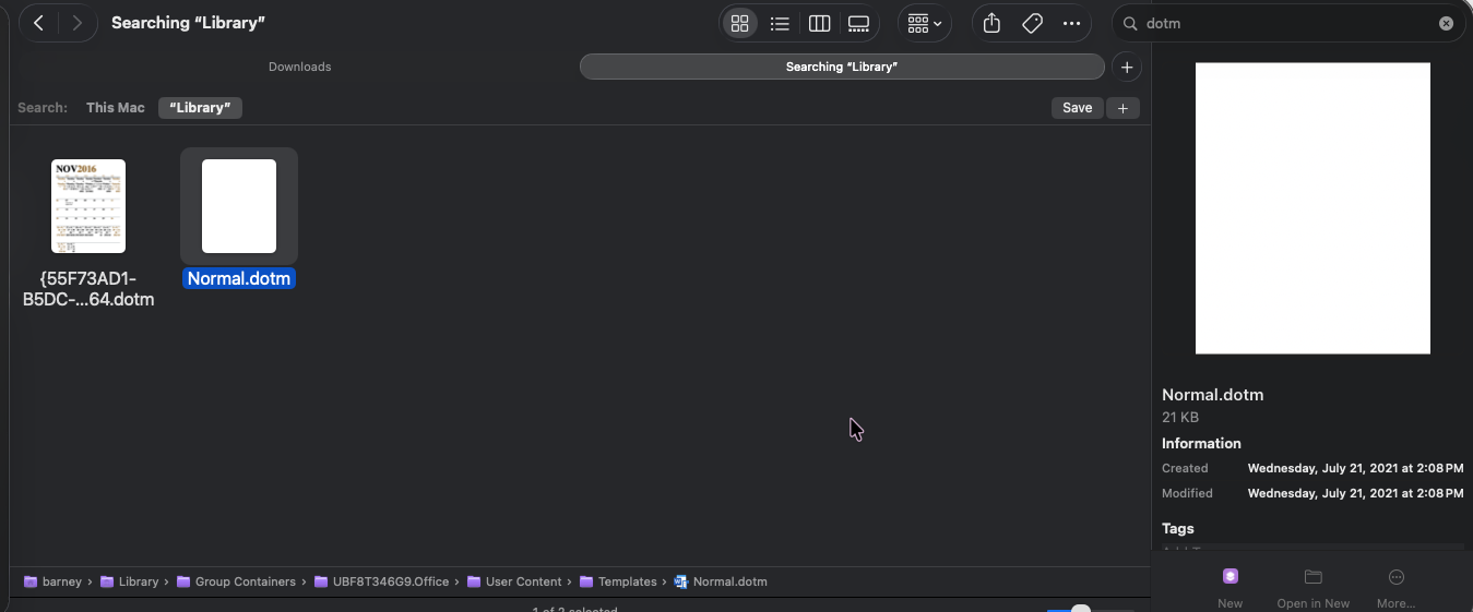I used to be able to quickly find custom Word templates by searching for .dotx files using either Spotlight or Finder.