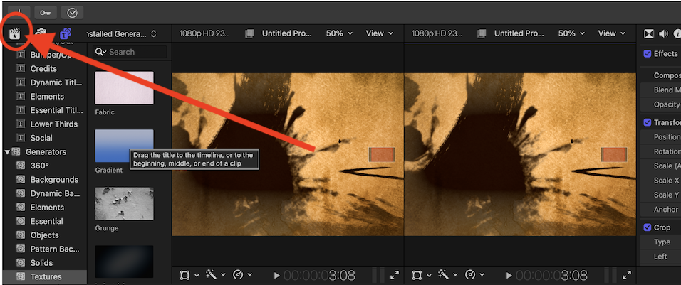 The browser is that section at the top left. It is currently showing Titles and Generators.