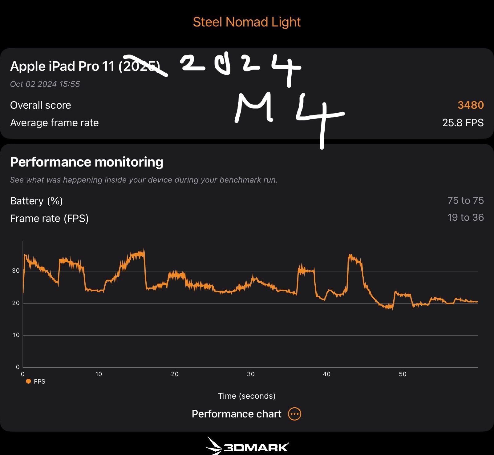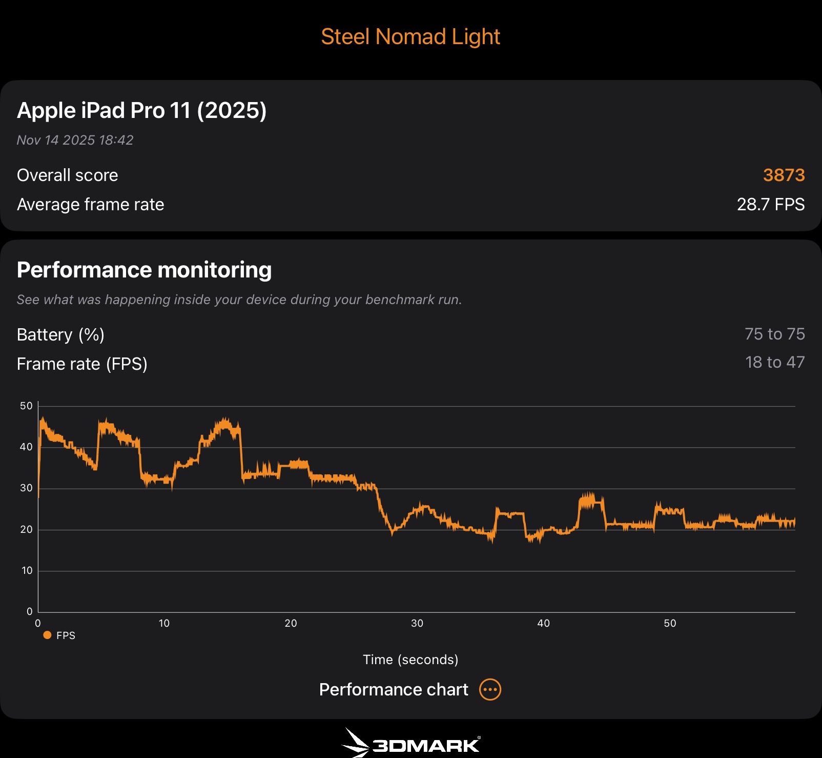 From the second half of the benchmark 3DMark Steel Nomad on my Ipad Pro M5 is running slower than with my previous Ipad Pro M4,