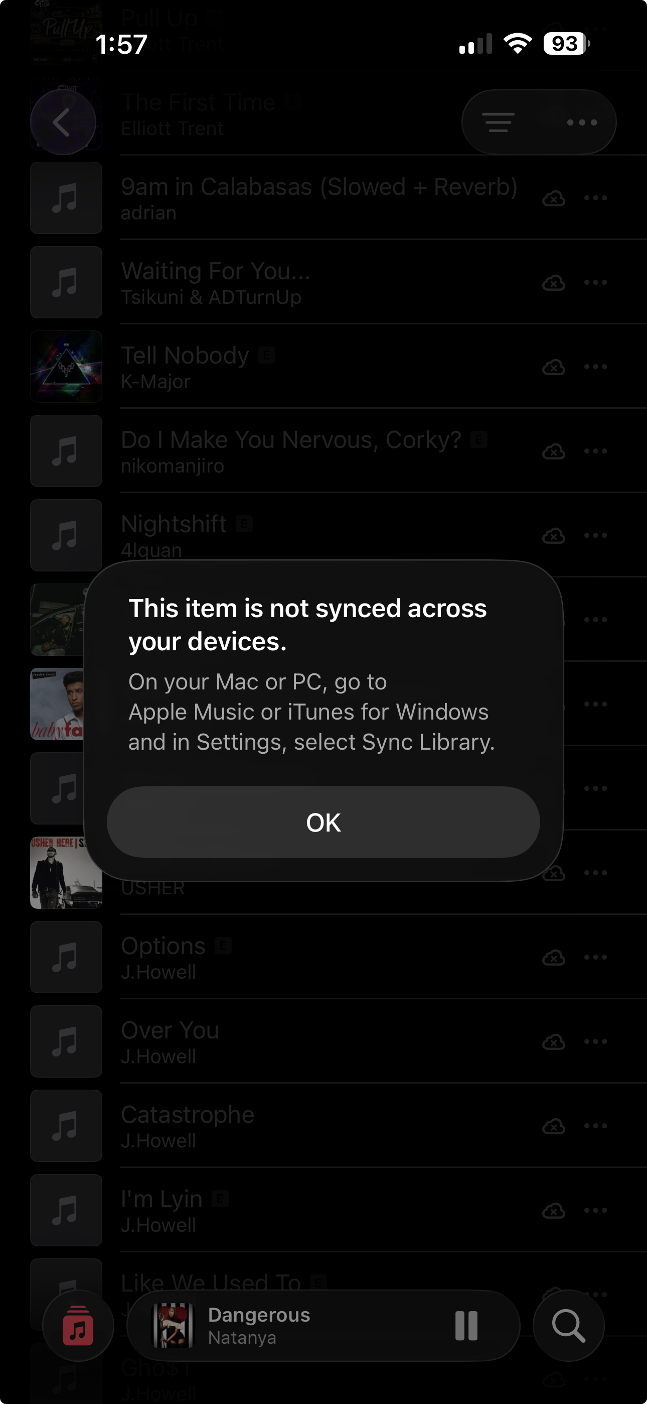 Now the problem is getting worse. New songs that I download on my iPhone are also turning invisible, and I get the same “not synced across your devices” message. If I delete a song and add it back to my library, it still says it’s unavailable even though it is available in Apple Music.