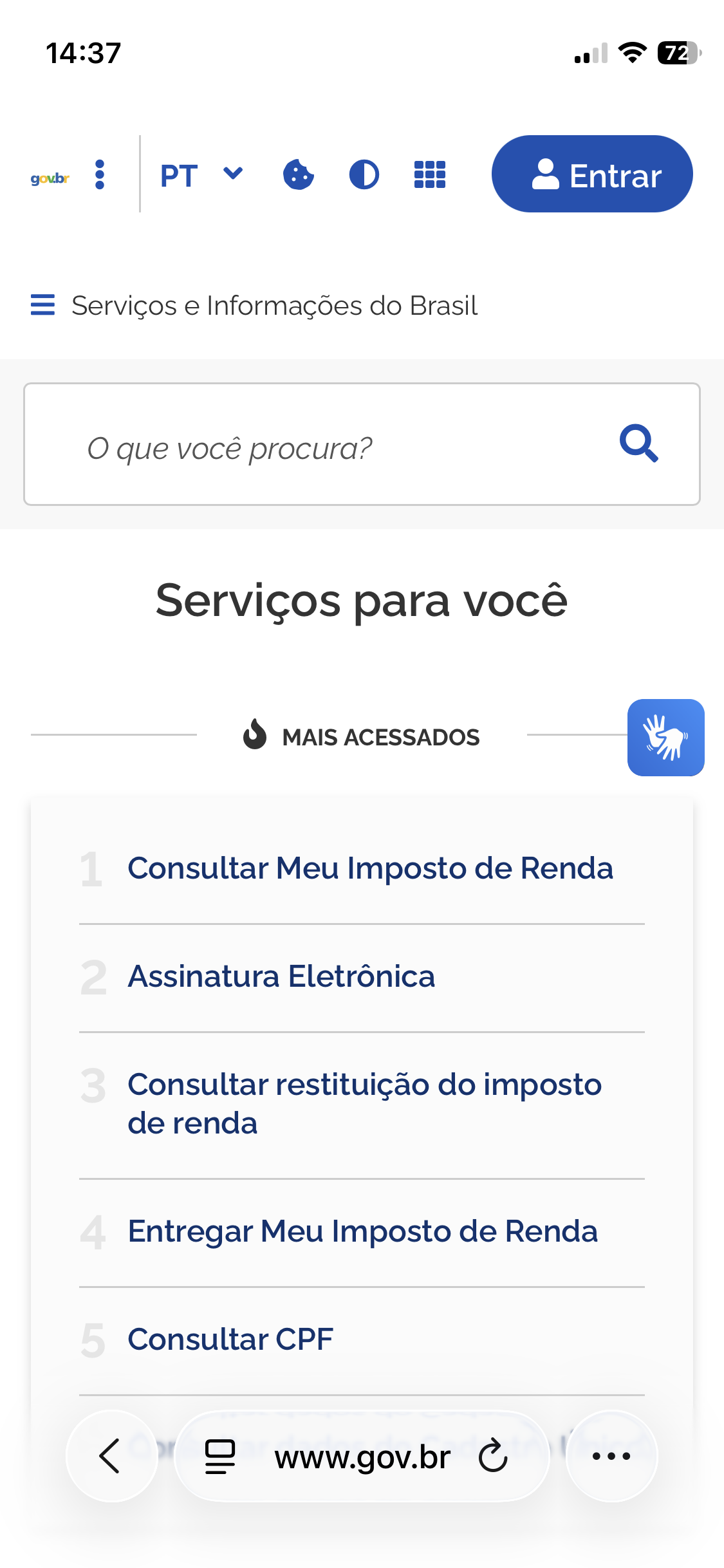 Não consigo acessar o site gov.br , informação que aparece : o Safari não pode abrir a sua conta pois o endereço é inválido .