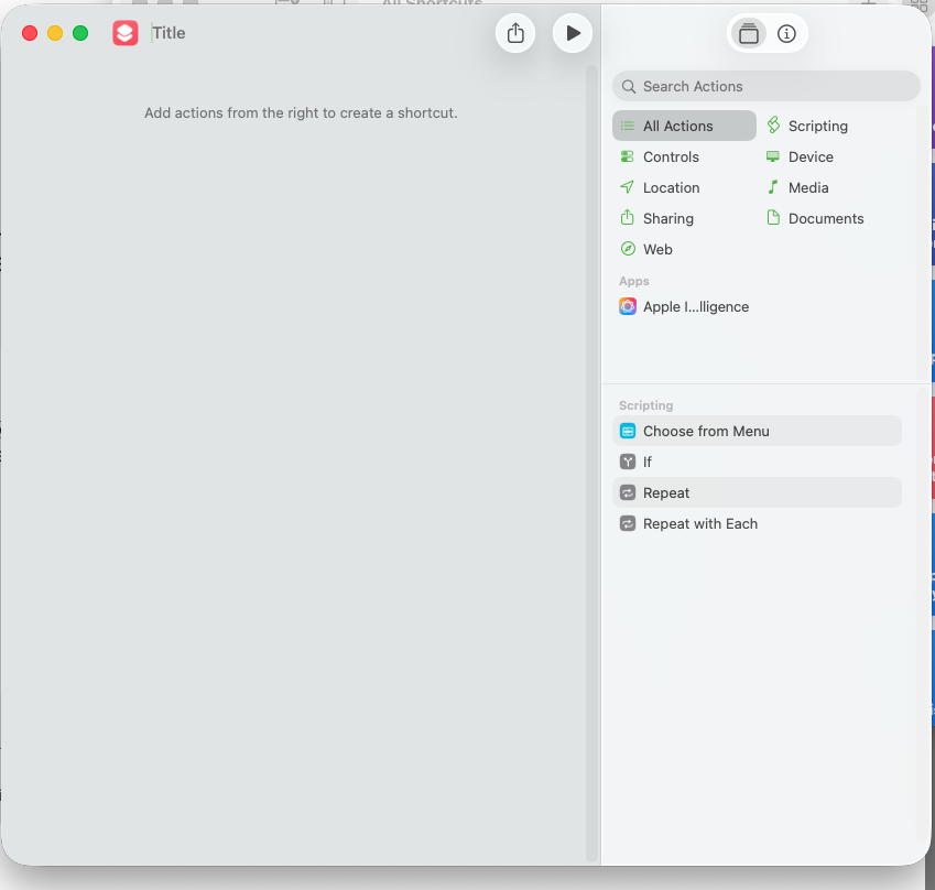 In Shortcuts, there are no actions showing. Actually, I only get 4