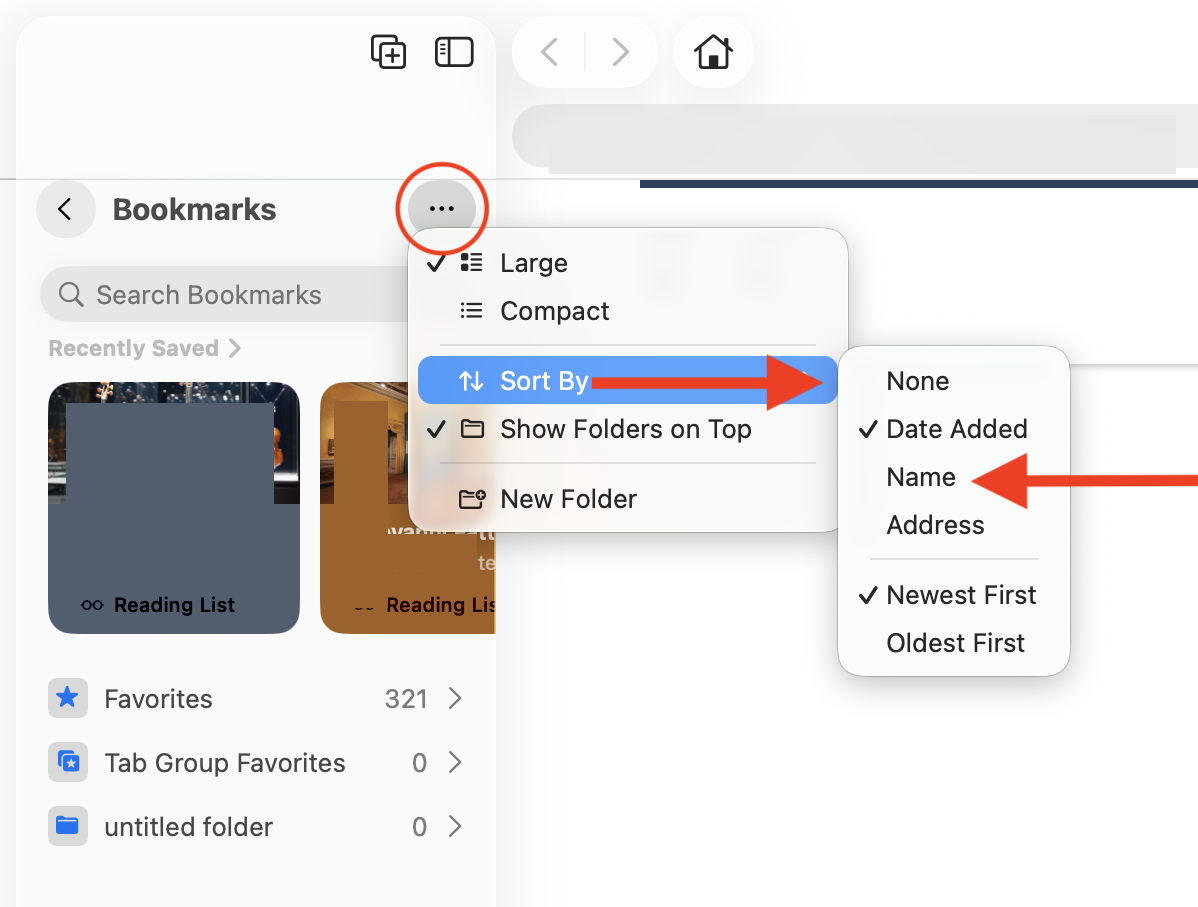 I inadvertently upgraded my MacBook Pro and didn't realize that it would affect the Bookmark format. I spent time rebuilding my folders as well as the bookmarks inside the folders.I tried to drag and drop the folder in between two folders to arrange them in alphabetical order . All it did was drop it into another folder. Frustrating. I had to rebuild the folder and bookmarks. Is there any way I can put bookmark folders in alphabetical order without drag and drop? Help!