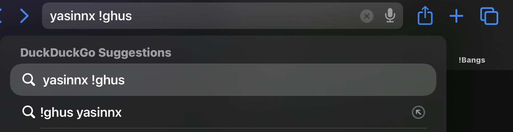 You can add a text replacement for some short string (@github, for instance) and that’ll substitute in apps everywhere, and that keyword can be configured to insert (for instance) the site:github.com text for use in Safari and either Google or DDG.