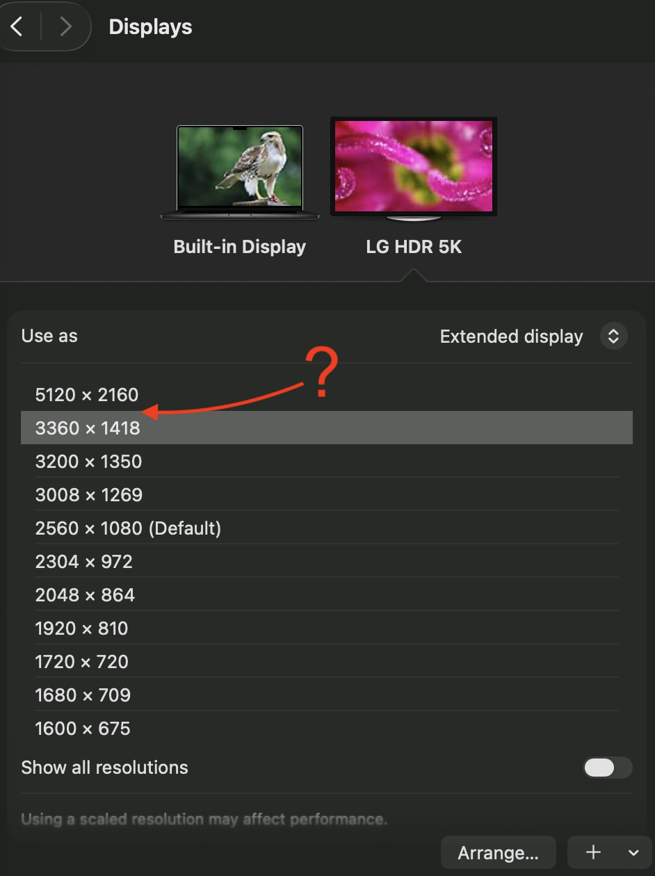 - Resolution: 5K2K (“Looks like 3840 × 1620”)