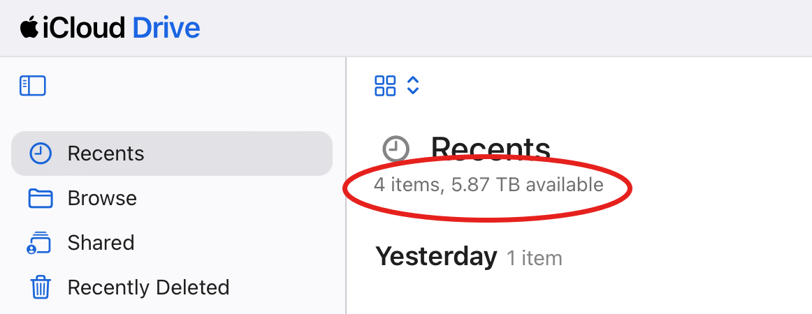 Choose that option. You should see a little iCloud down arrow icon indicating that this file is available for download. But don't get too excited. It's probably not true. You may have to wait a day or two for the storage to become available.