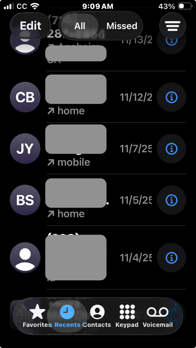 when I receive a call from a contact for which I have multiple phone numbers on their contact card, how can I tell which number was used for the call on my recent calls list?