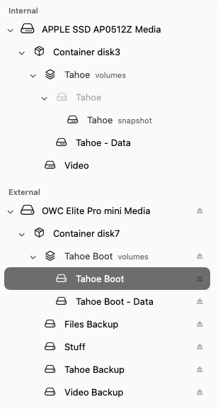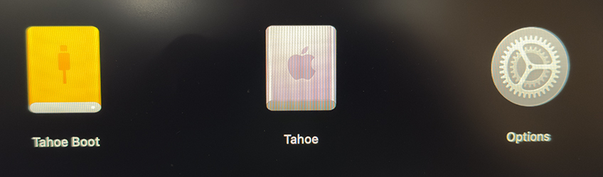 Both installs of Tahoe are selectable on a cold power button startup, or in the System Settings to choose either one as the startup disk.