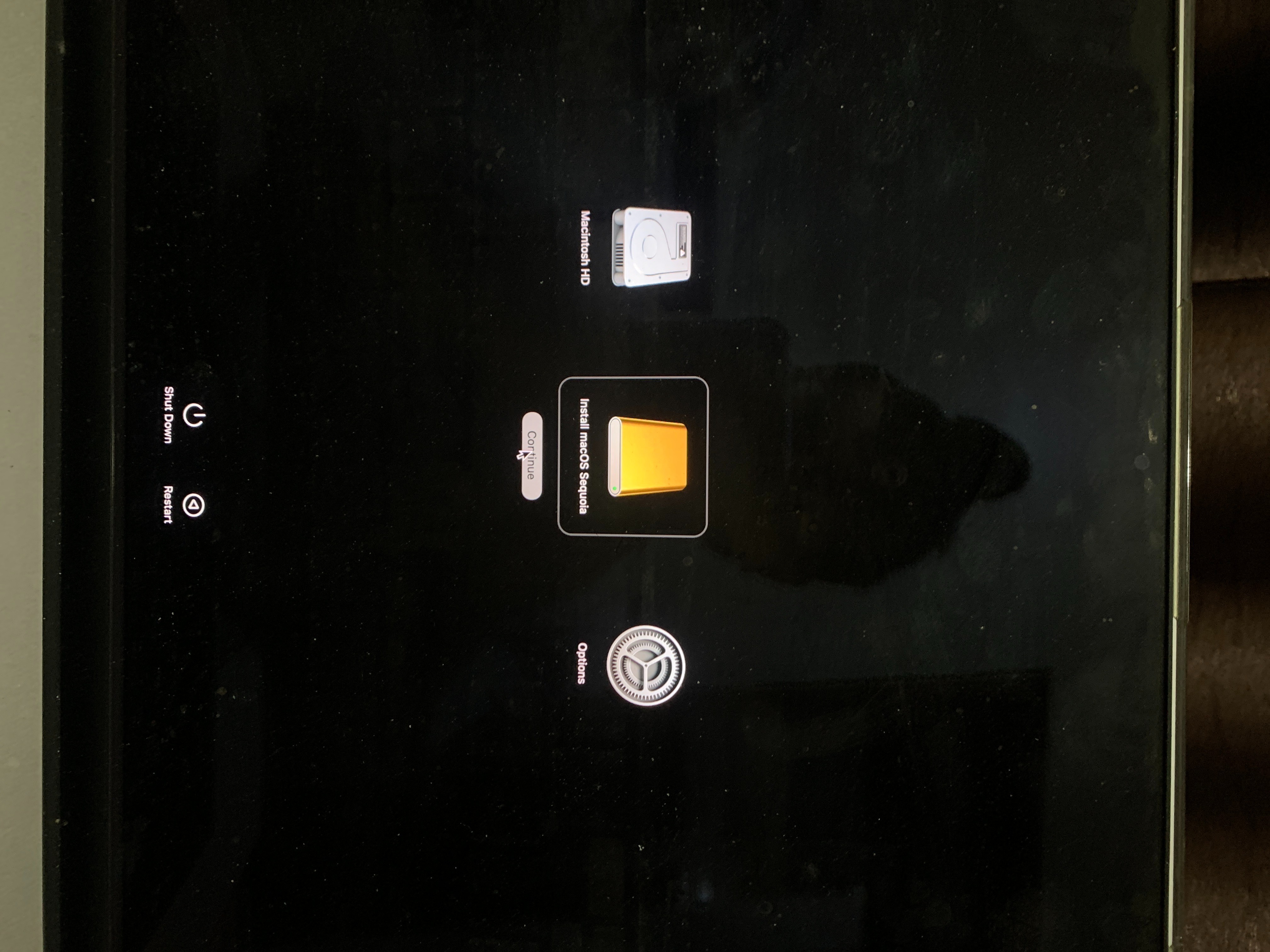 If you can't select the SanDisk drive from the Options screen, STOP! Go back to your wife's Mac and make a bootable flash/thumb drive with Sequoia on it. Bring that completed flash drive over to your Mac, plug it in and do another cold start so you can select it as the startup drive. This should work. Then proceed with installing Sequoia on the SanDisk external drive.
