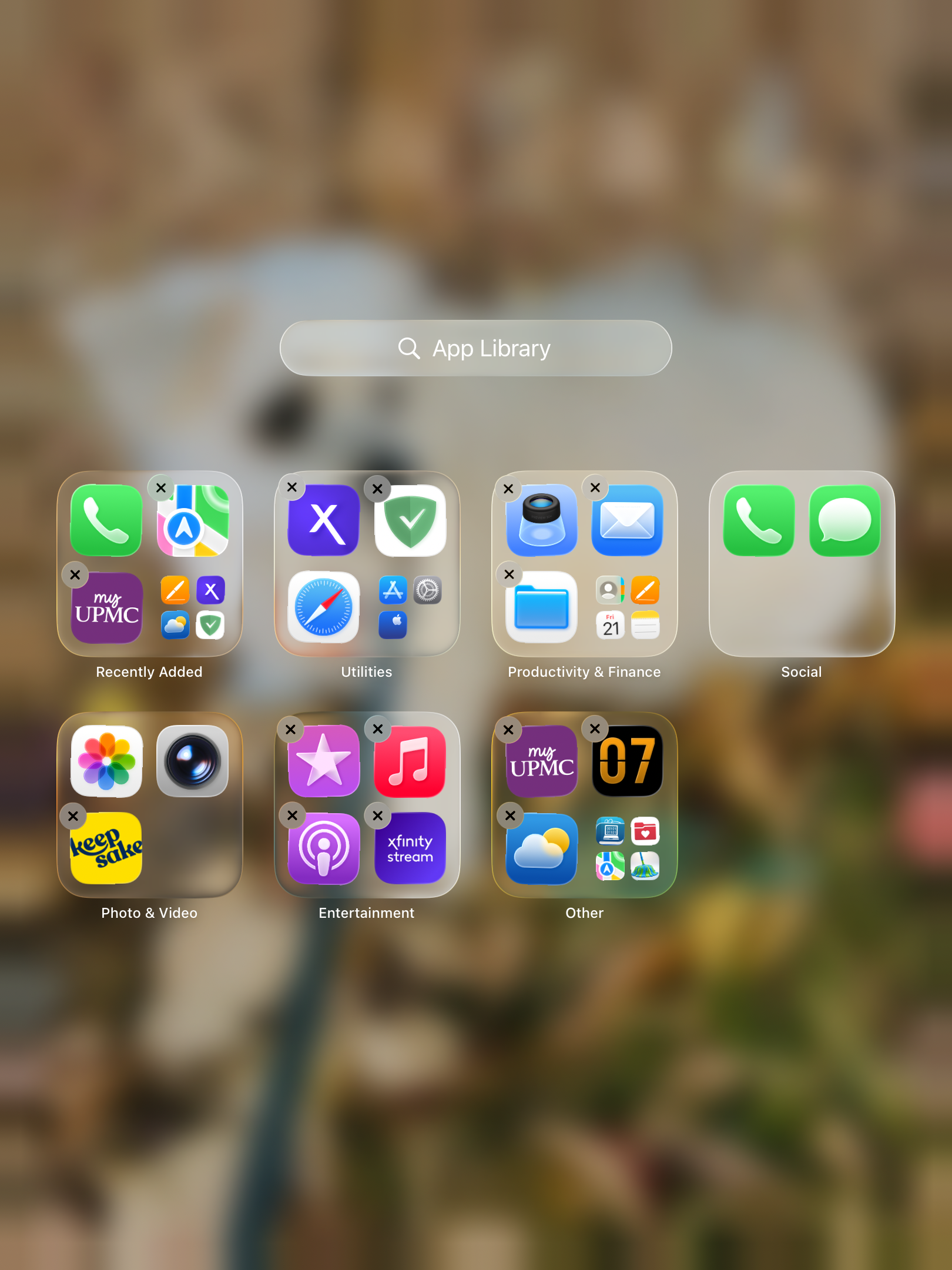 If you would like to remove the App ~ in your App Library , touch & hold an empty space until the icons begin moving , then just tap on the "X" . When you are finished , tap on the screen once and the icons will stop moving . This is how it looks :