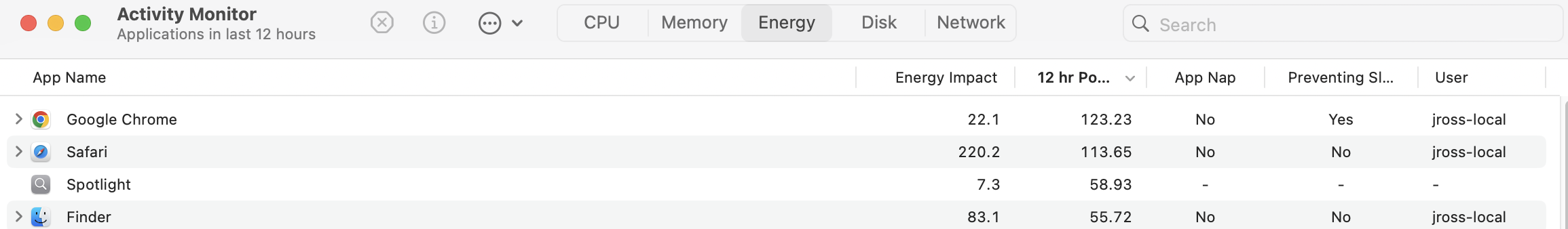 My MacBook Pro (Apple M2 Pro, Sequoia 15.7) has had really bad battery performance recently (I haven't updated software in the last month or made any other obvious changes that would precipitate this). Using Activity Monitor, I realized that Safari is really burning through energy: