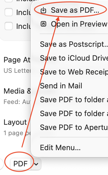 "I may not have been sufficiently clear. I do not want the PDF to print at that point. I am just trying to save it. (I will be using it with another pdf page, then putting them back to back to back in keynote. That has always worked until Tahoe. Now it will put the pdf on my desktop appropriately, but then I can't get out of printing mode."