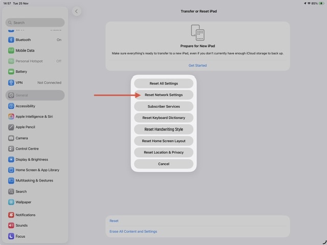 When you are happy to proceed, you can perform the reset from iPad settings: