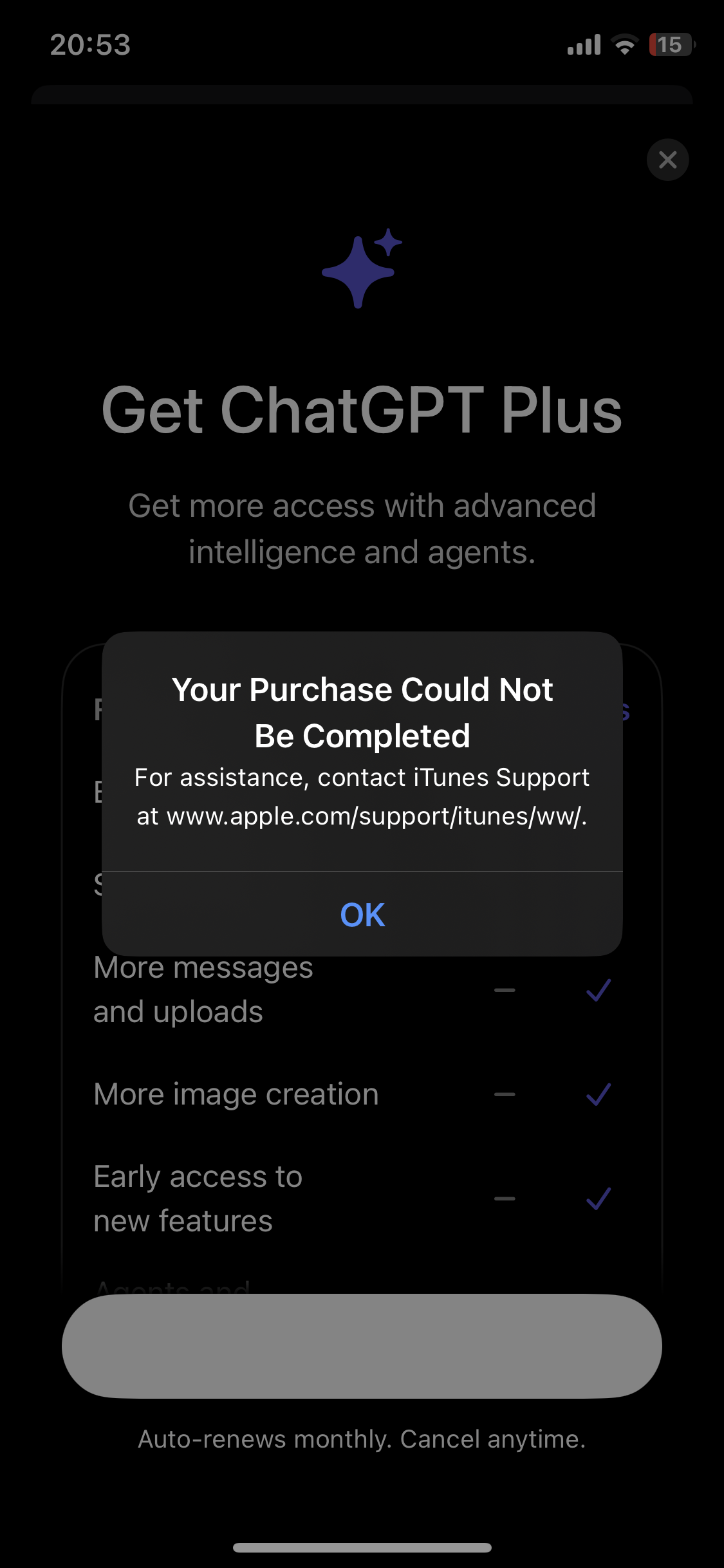 Unable to make ChatGPT purchase