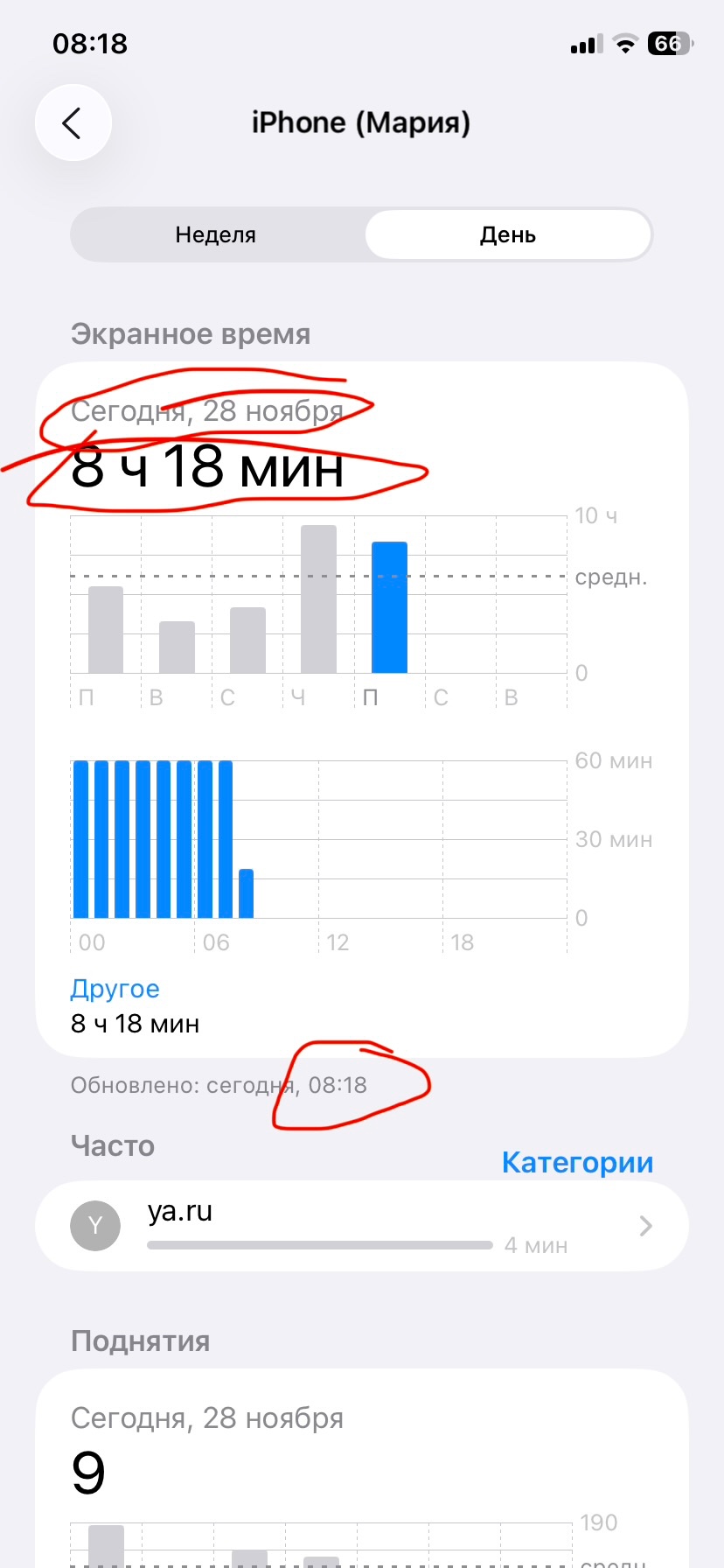 Экранное время отображается неправильно. iPhone 11, iOS 26