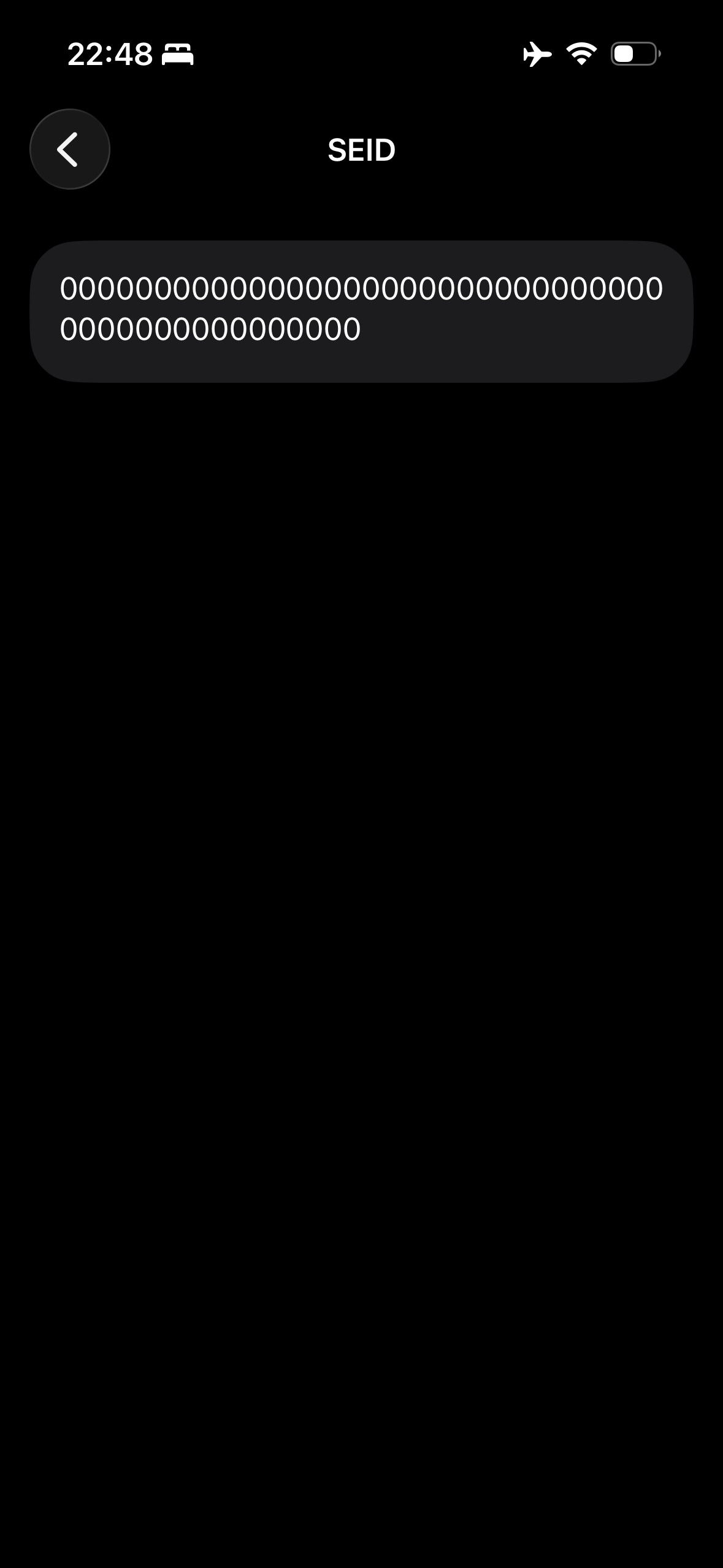 iPhone > Settings > General > About > SEID > do you see a blank field, string of zeros or a long alphanumeric string of characters?