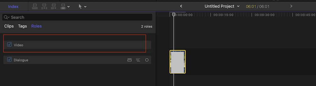 I closed the library and project. I created a new library and new project, and imported (fortunately I had one) an output of the previous project in media. Dragged it to the project timeline. It plays correctly in teh preview pane, but still, the timeline itself just show audio clips!