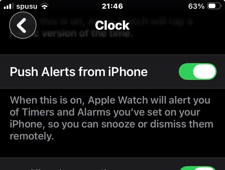 IWatch 11 not pushing notifications from iPhone 17 pro plus when set with clock app