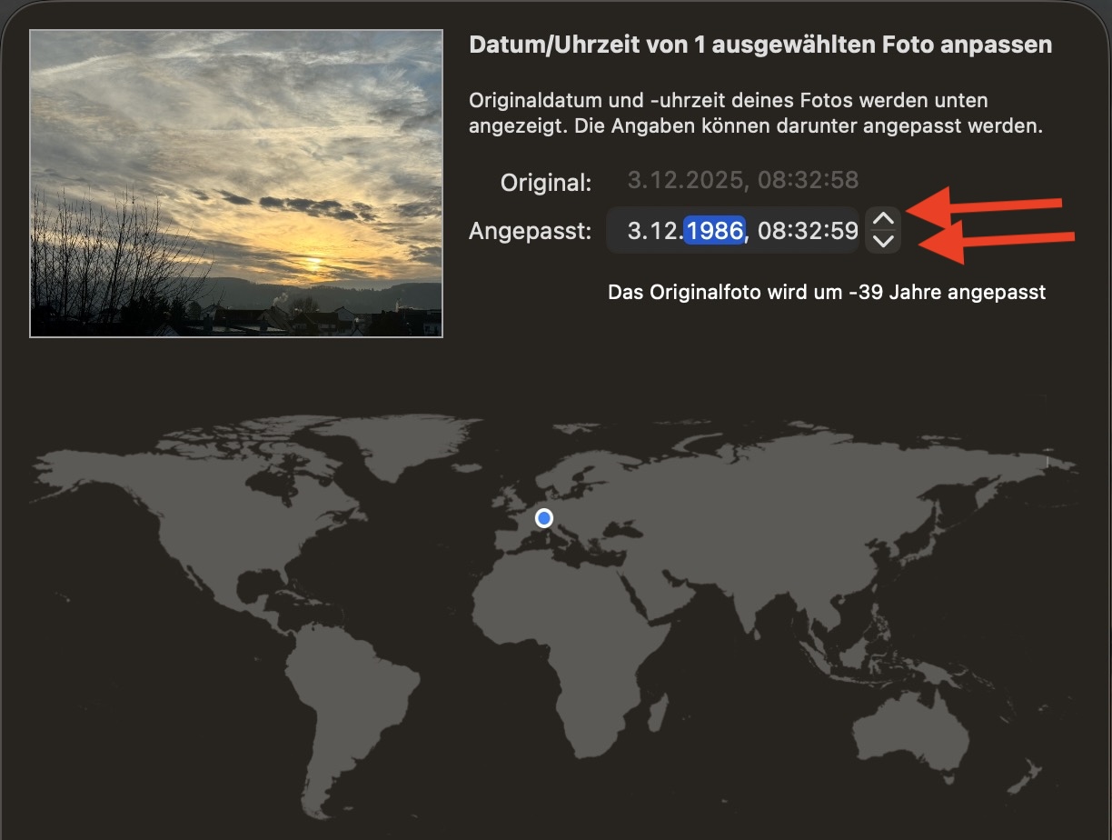 I want to adjust the date of a scanned photo from 2025 to 1986. When I enter 1986 it only seems to accept 86