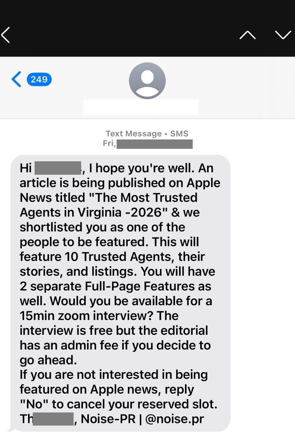 Hello - one of my agents was recently contacted by someone offering PR services under the Apple News banner.