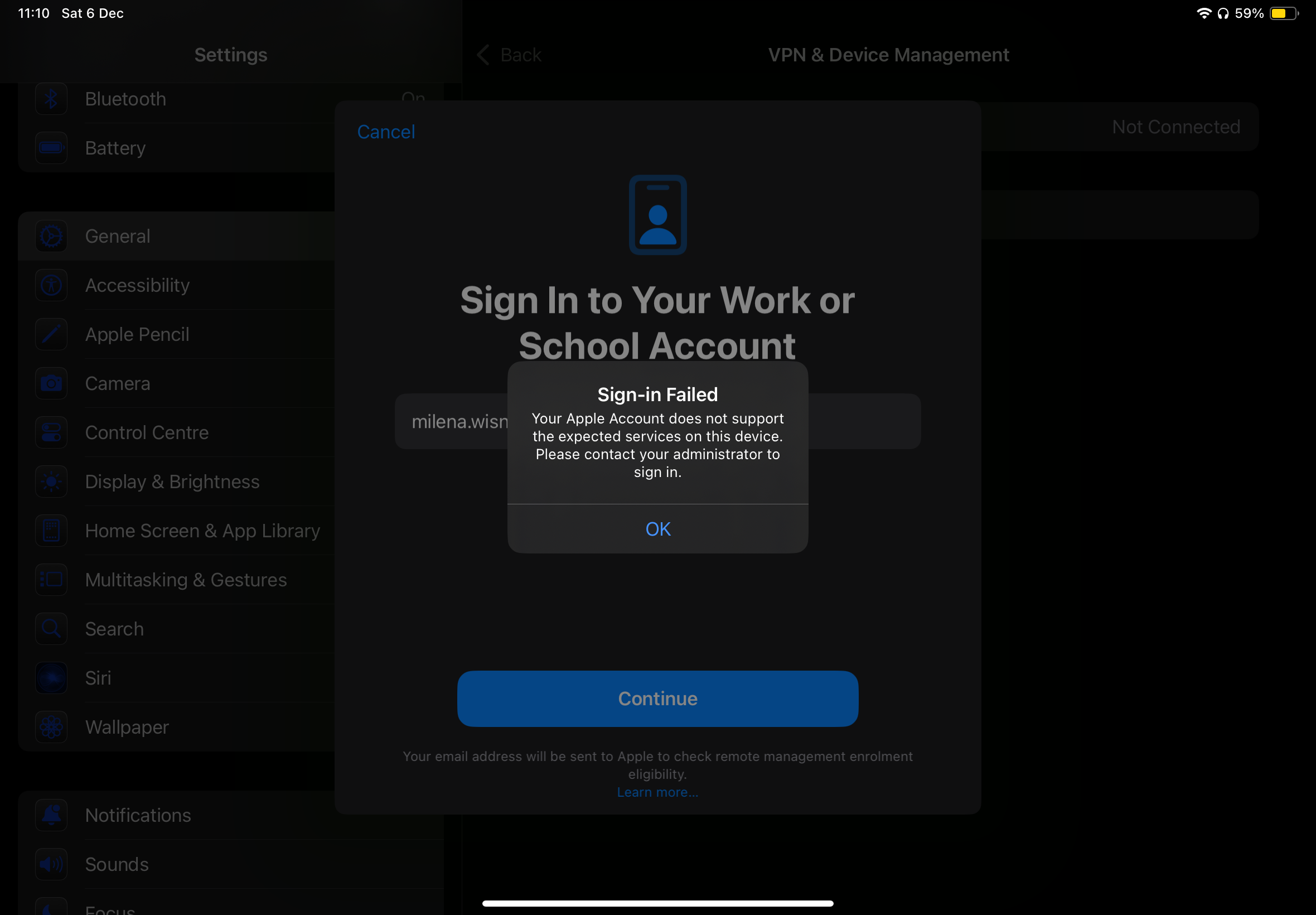I wanted to sign in to my work apps and i couldnt cause apple wouldnt let me so i had to sign in through the system first, problem os it doesnt let me and i dont know who is my administrator (administrator of what)