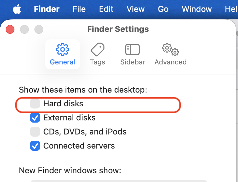 Icon for Mac internal hard disk not mounting on upper right hand corner.