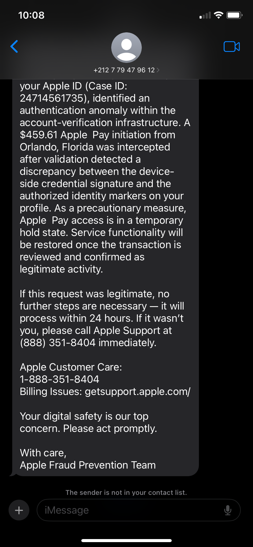 I got a text saying all this and am wanting to know if this is a scam. Im assuming it is based on the weird number its from and the fake apple support number at the bottom bit want help. Thank you guys.