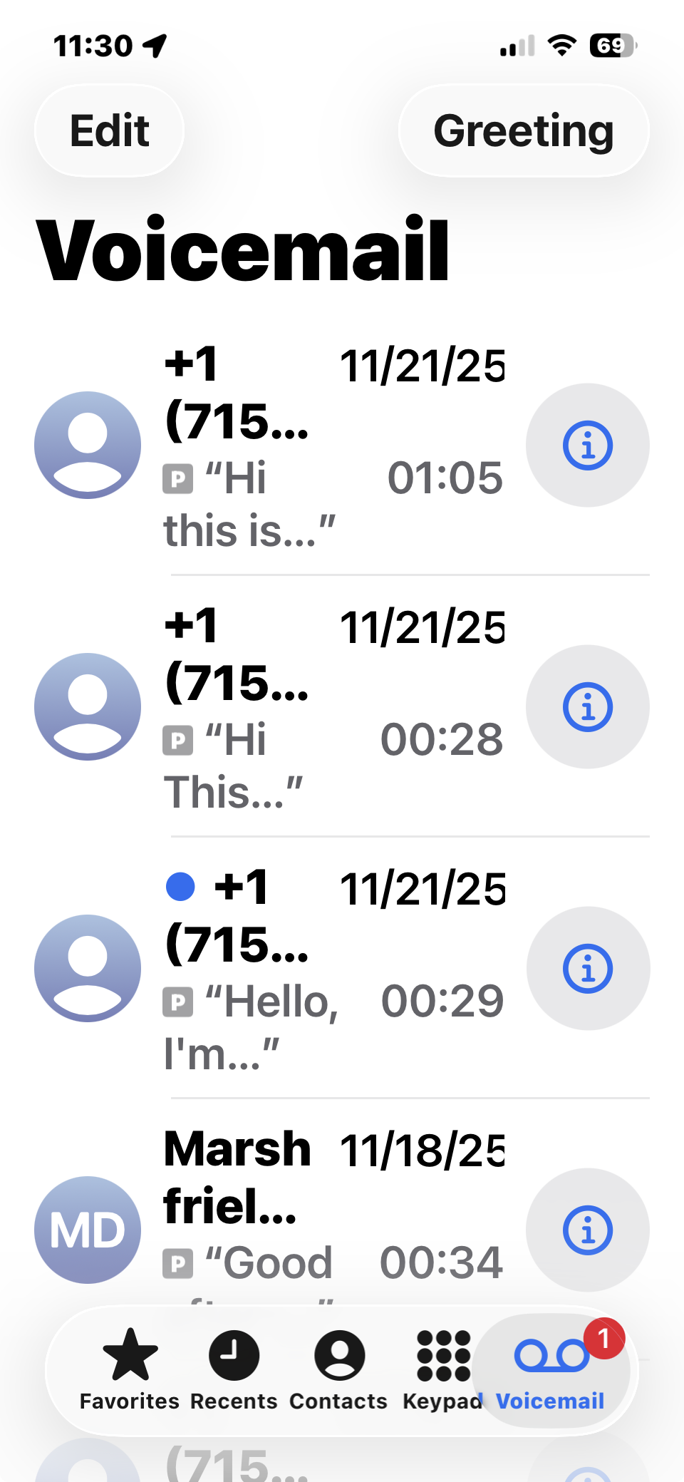 I I want to see the whole phone number on my recent calls list and voice mail list. The poster bubble and informatin button bubble are so large it blocks seeing the whole number. This is a change since I just updated my iso this morning.
