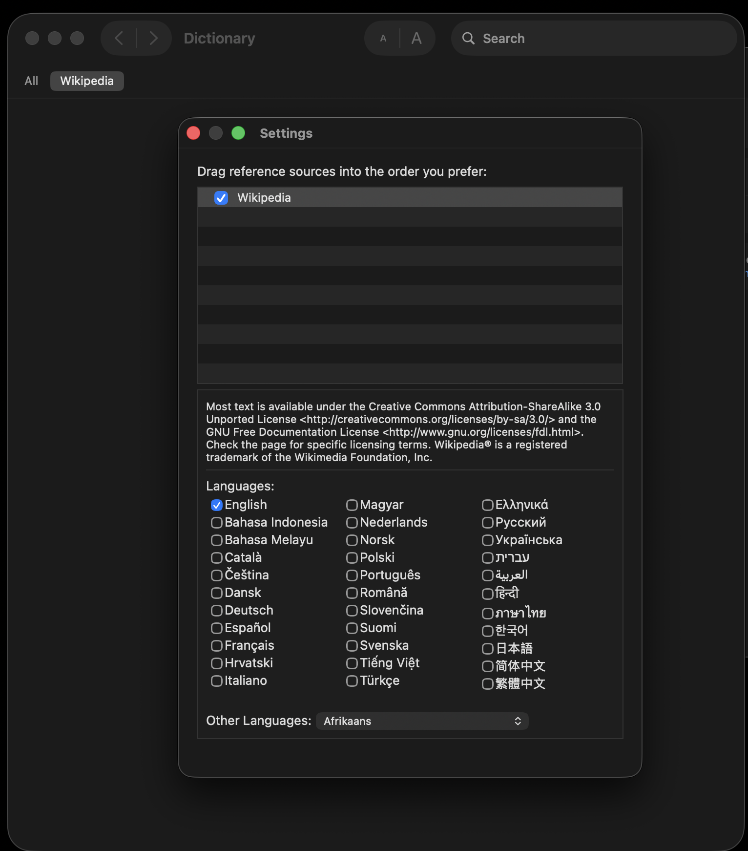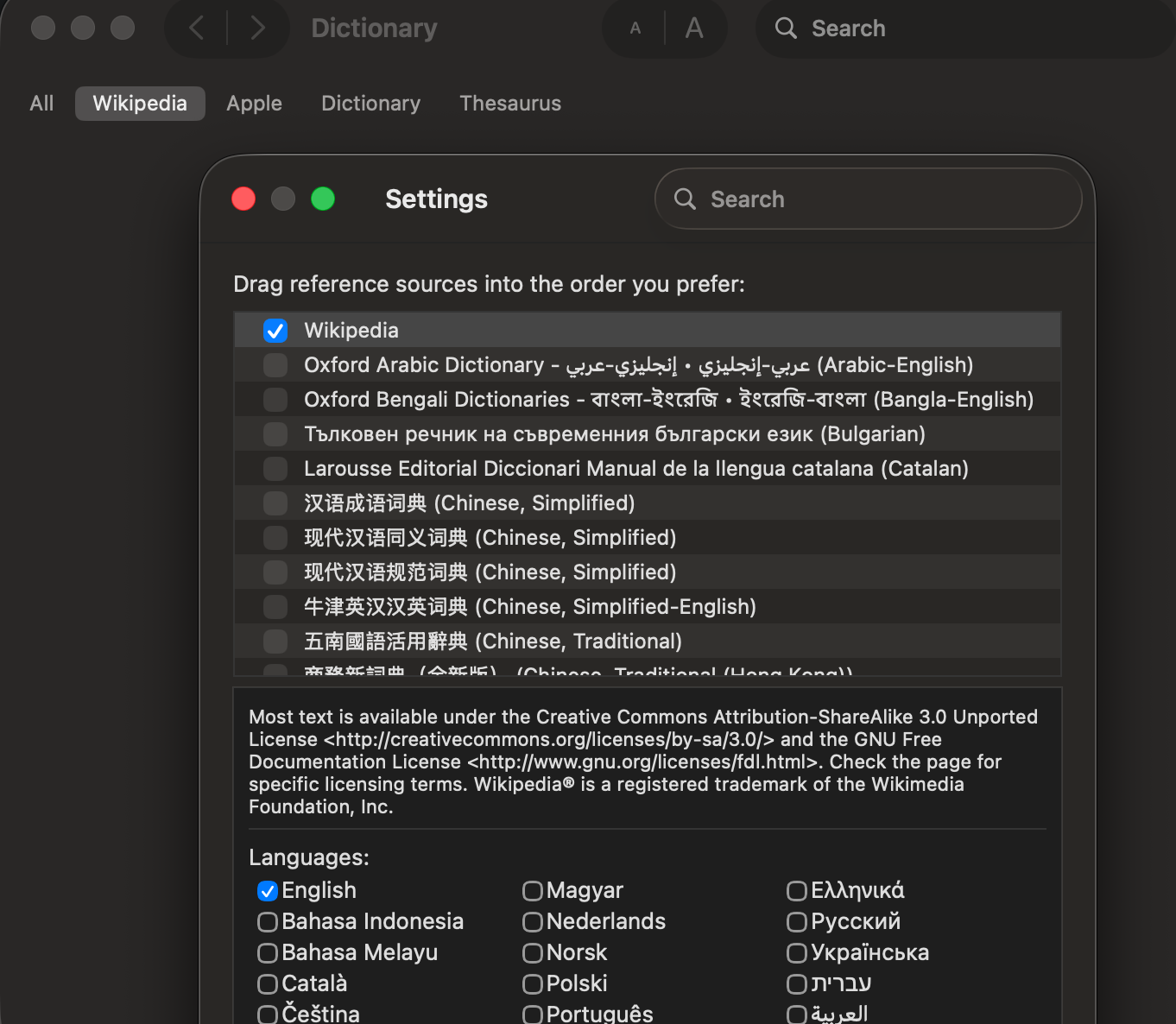 7: Open Dictionary and confirm that your UI has repaired and all dictionaries are available.