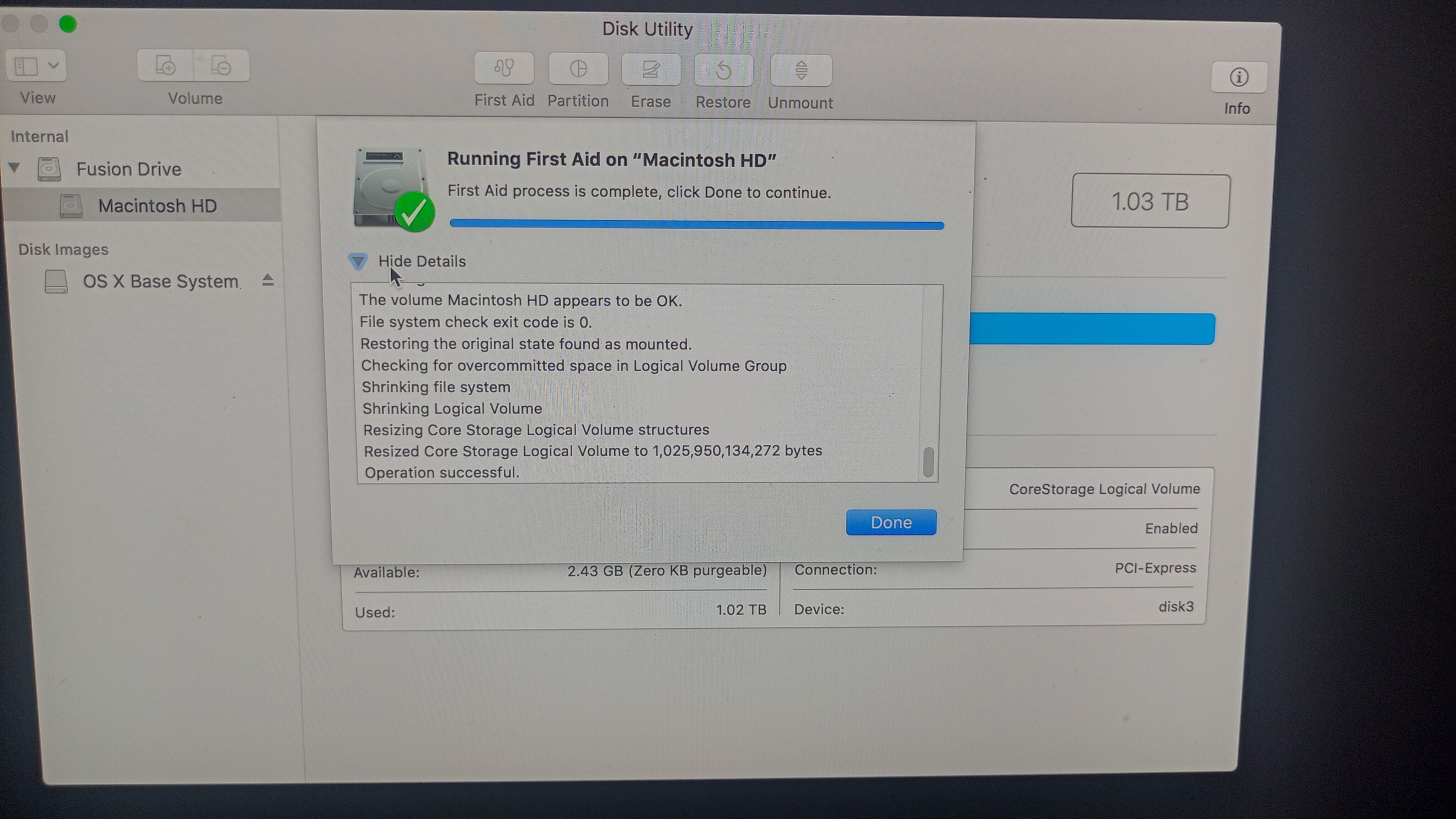 Your big problem is you only have about 2.43GB of Free storage space as of the picture of Disk Utility First Aid. With the macOS Extended file system bad things happen when it runs out of Free storage space.....it can corrupt the files on the drive and other problems. It is also interesting that the First Aid portion you pictured, shows it resizing the Core Storage Logic Volume......that is bad and indicates a bigger problem with this volume/drive.