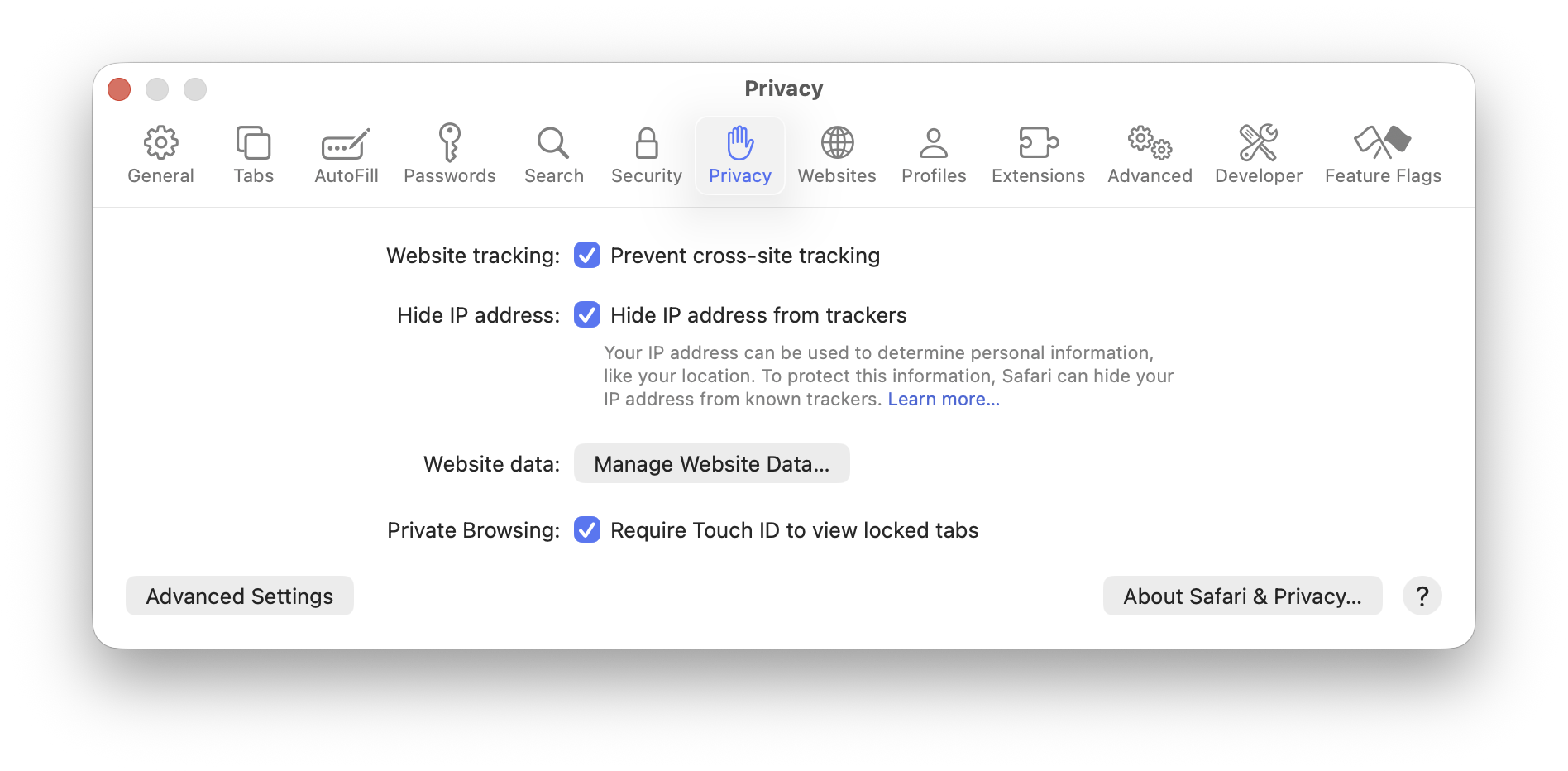 Except, of course, there’s no such listing in Privacy, or in the Advanced Settings.
