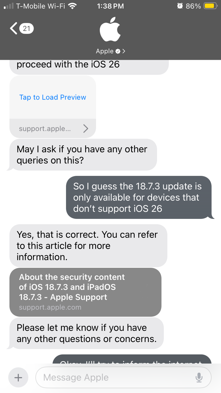 Apple Explains why iOS 18.7.3 is only available to some users still on iOS 18