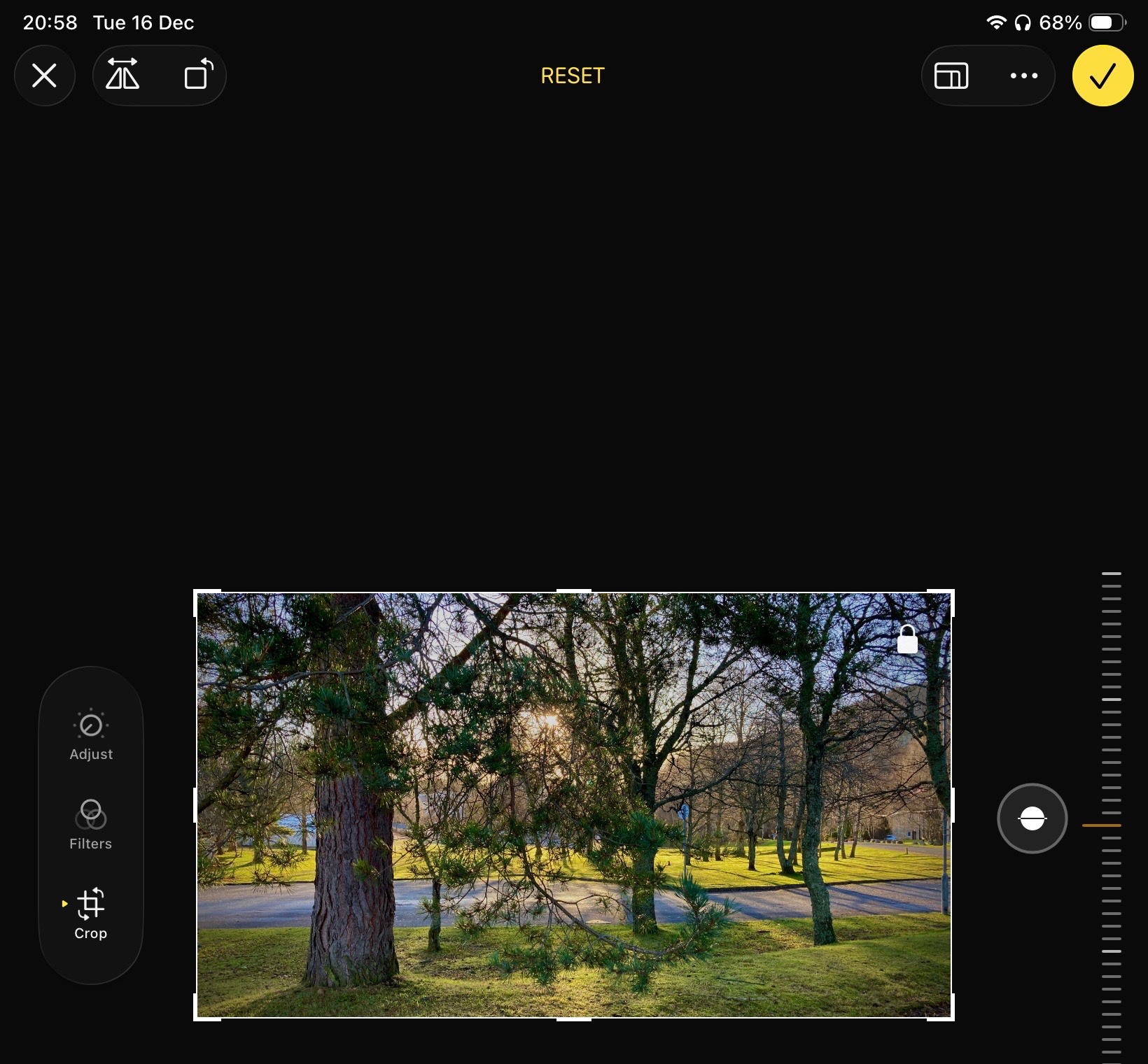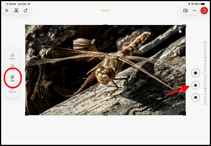 Missing keystone correction in Photos on iPad Air 4 in iOS 26.2? Only the Rotation tool is showing.