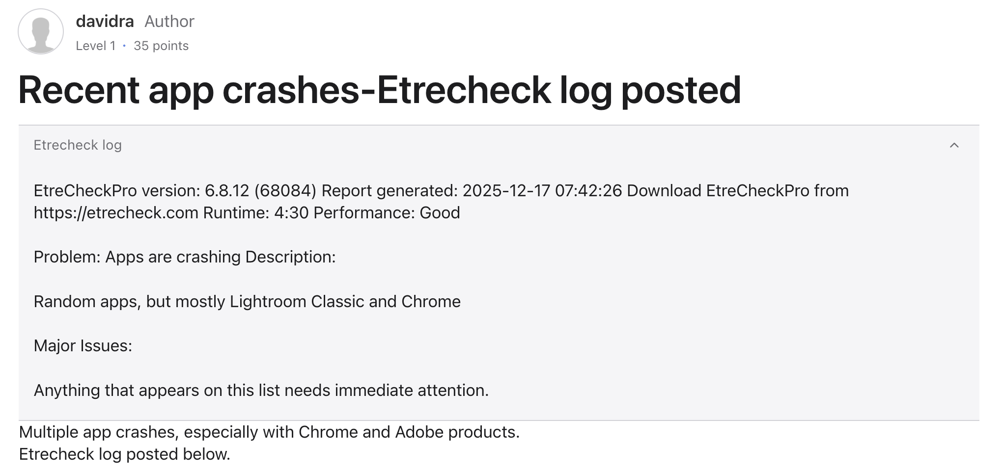 Another Contributor picked of your Etrecheck Report in your other posting where the report is actually located