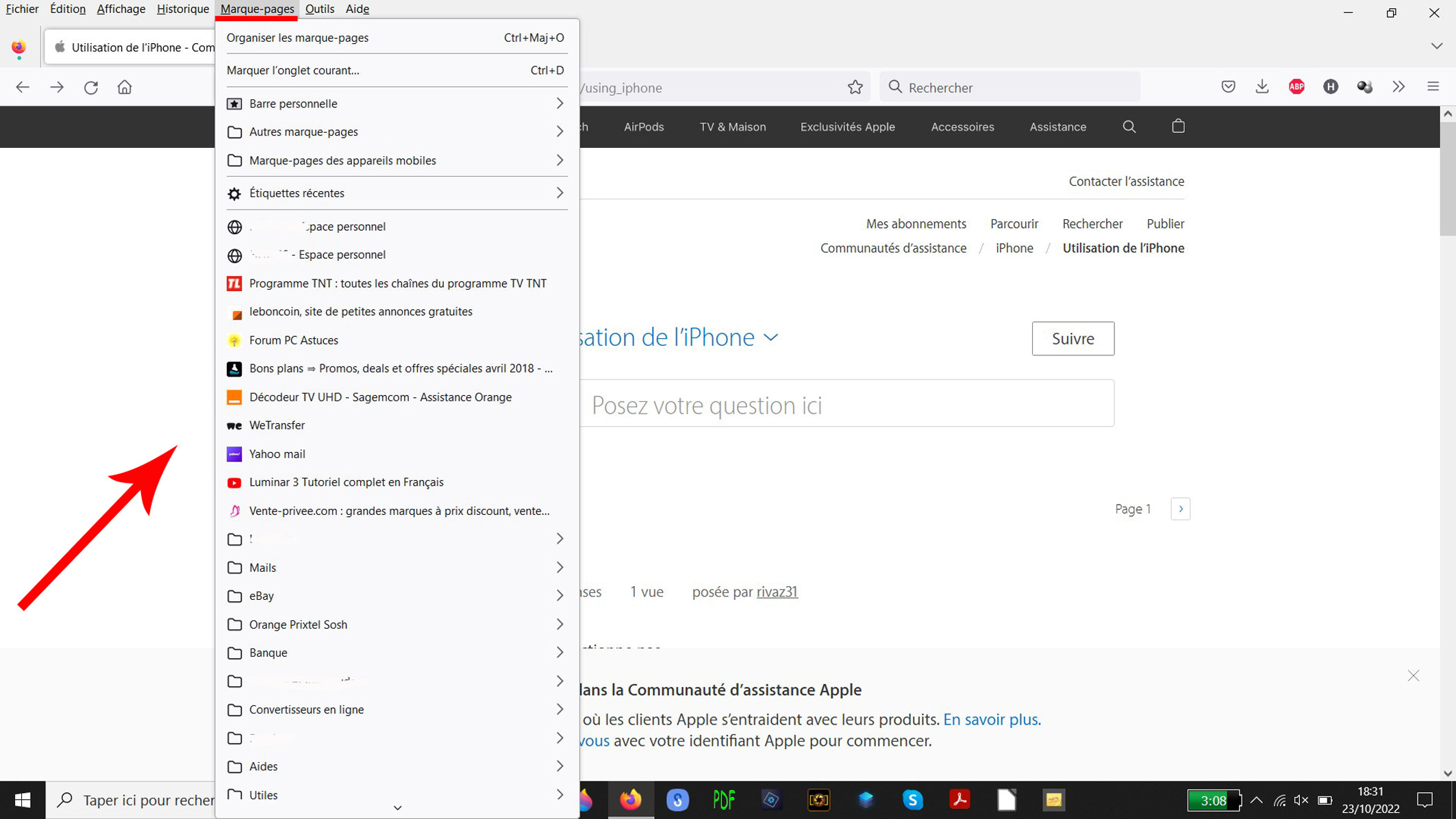 Capture 5 : là, j'ai bien mes marque pages mais je ne peux pas les organiser ... je peux le faire à partir de mon PC ce n'est pas grave