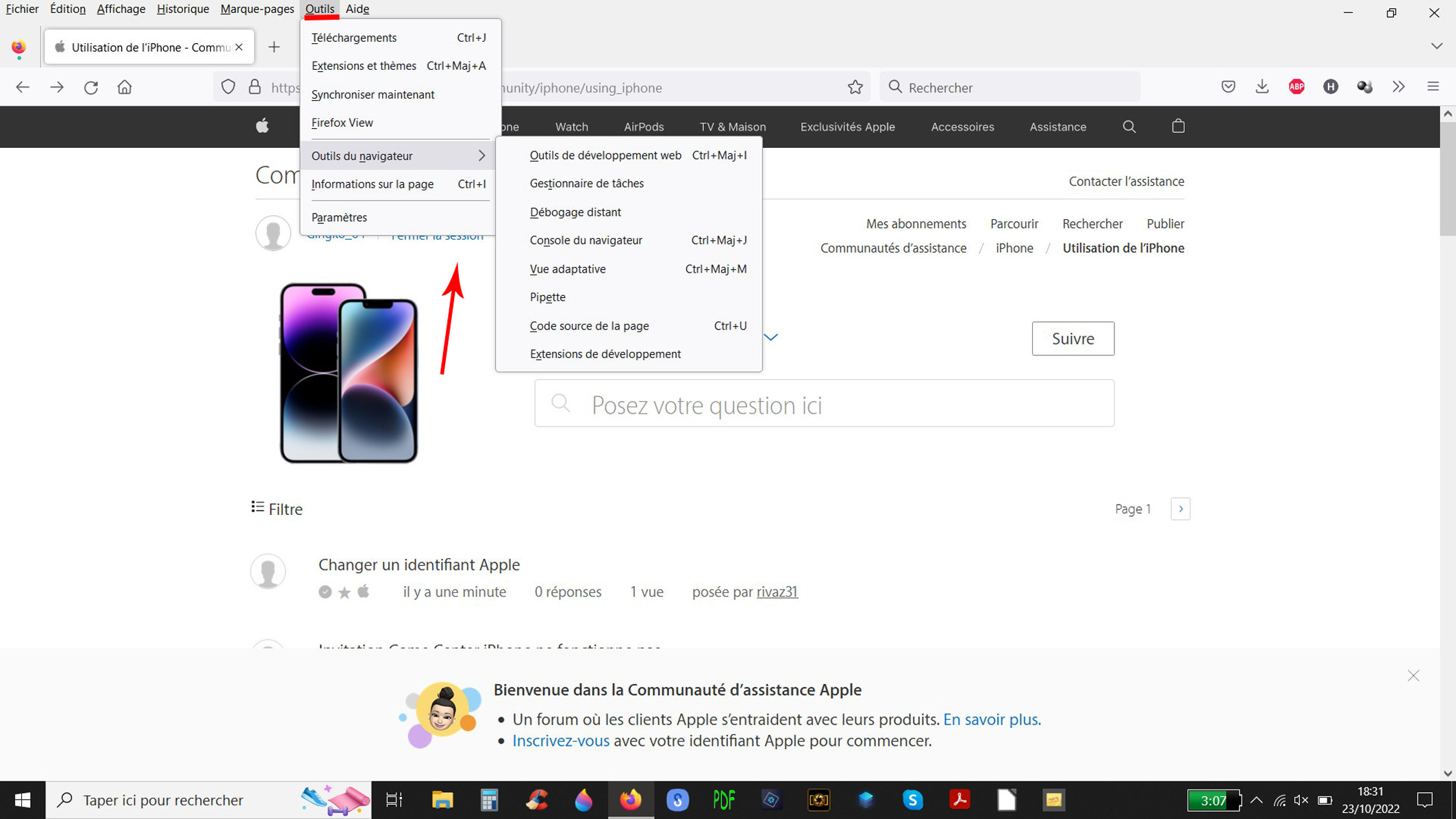 Capture 6 : ici, dans "Outils" j'ai bien téléchargements mais pas le reste, tant pis