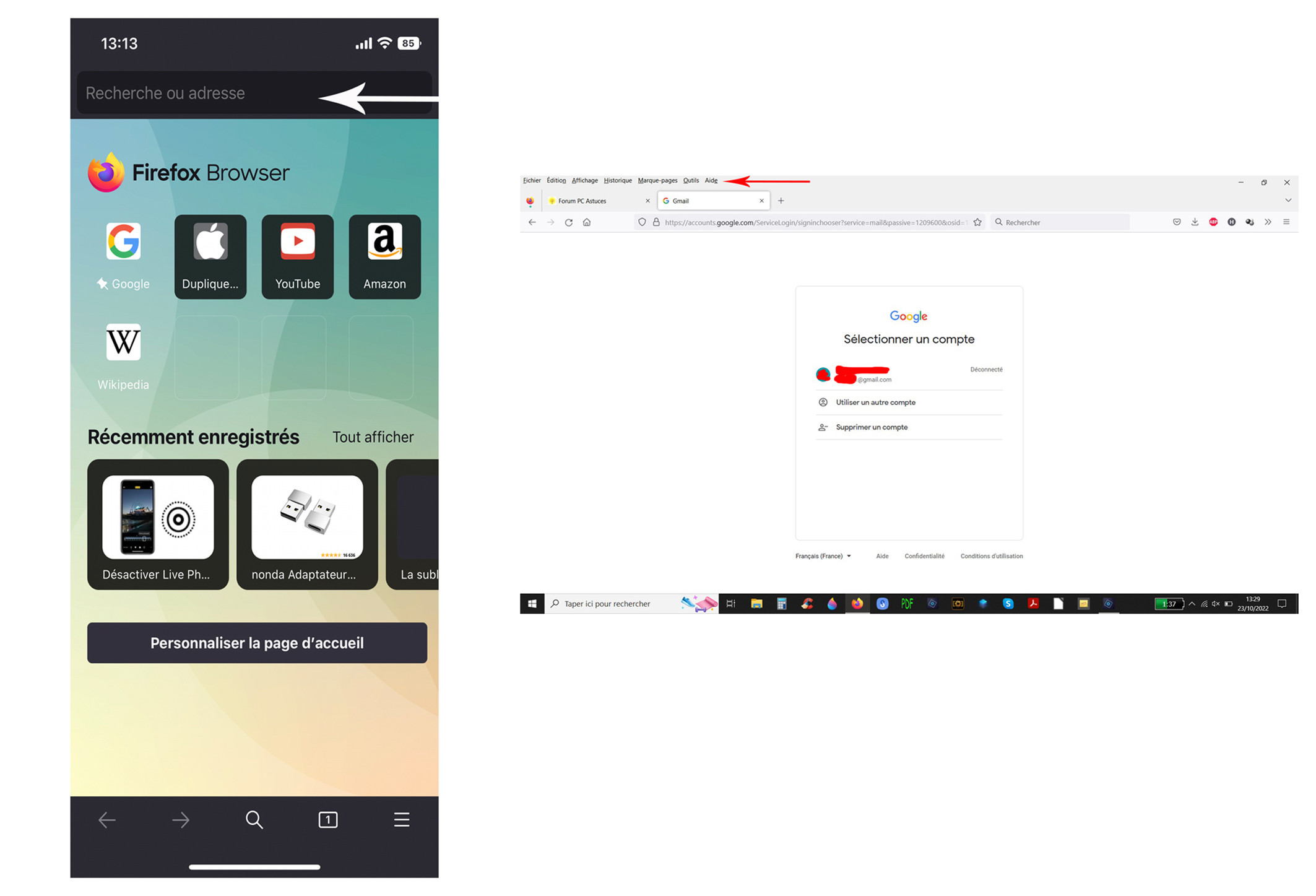 Pour ce qui est de onglets synchronisée, je n'ai pas de compte Firefox, mais normalement la fonctionnalité est censée être présente une fois connecté et associés à l'ordinateur.