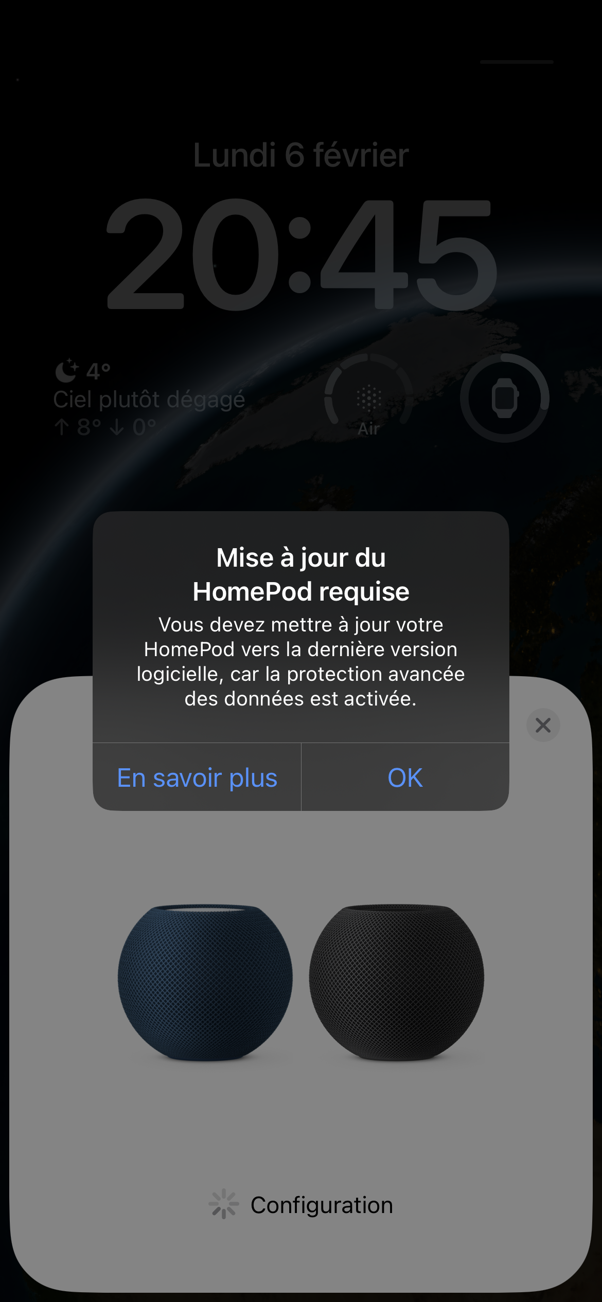 Échec configuration HomePod