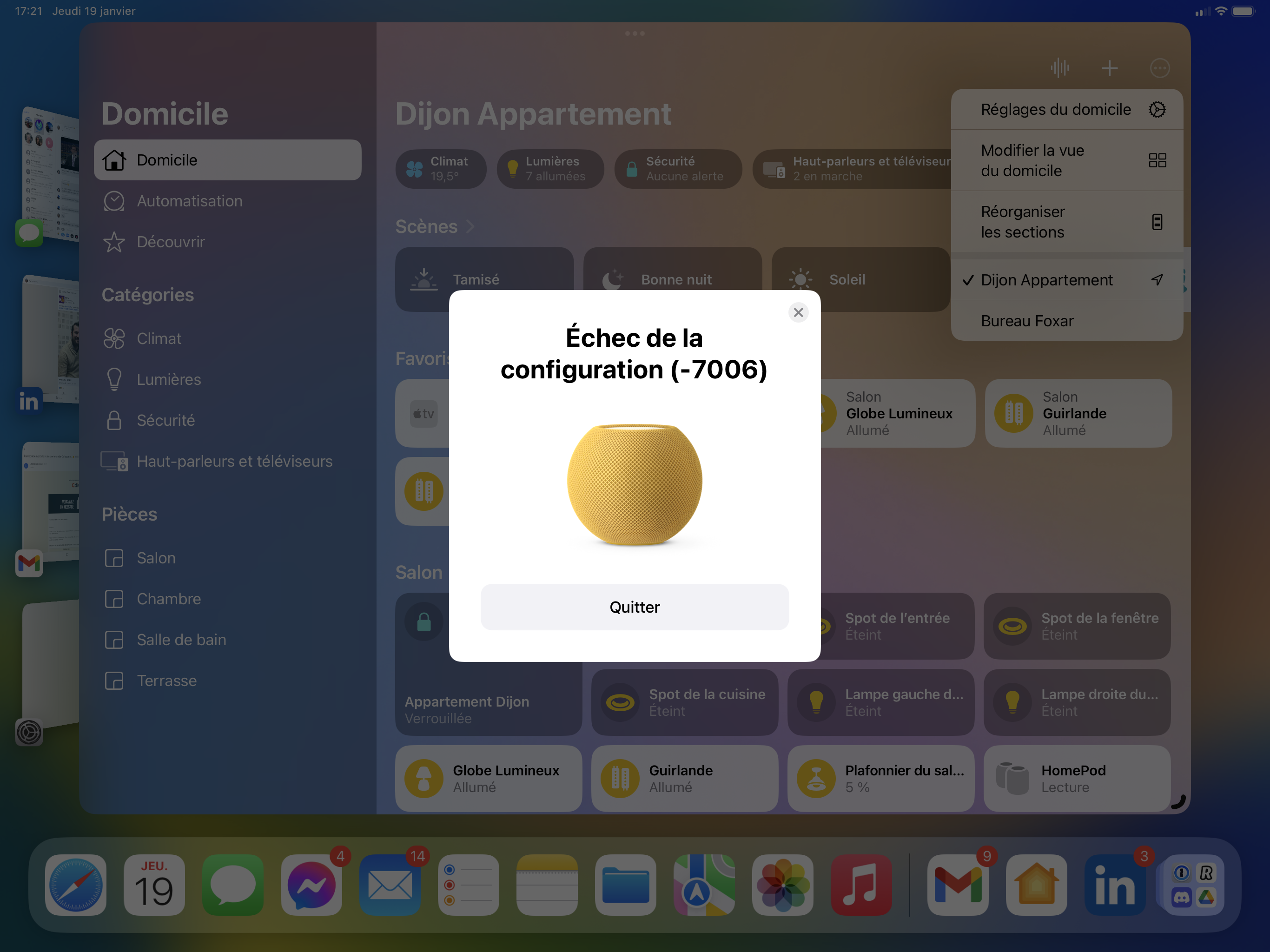 Lorsque je veux configurer un nouvel HomePod mini, je tombe sur une erreur -7006, échec de la configuration. J'ai essayé avec plusieurs appareils (iPad, iPhone) et tout est à jour.