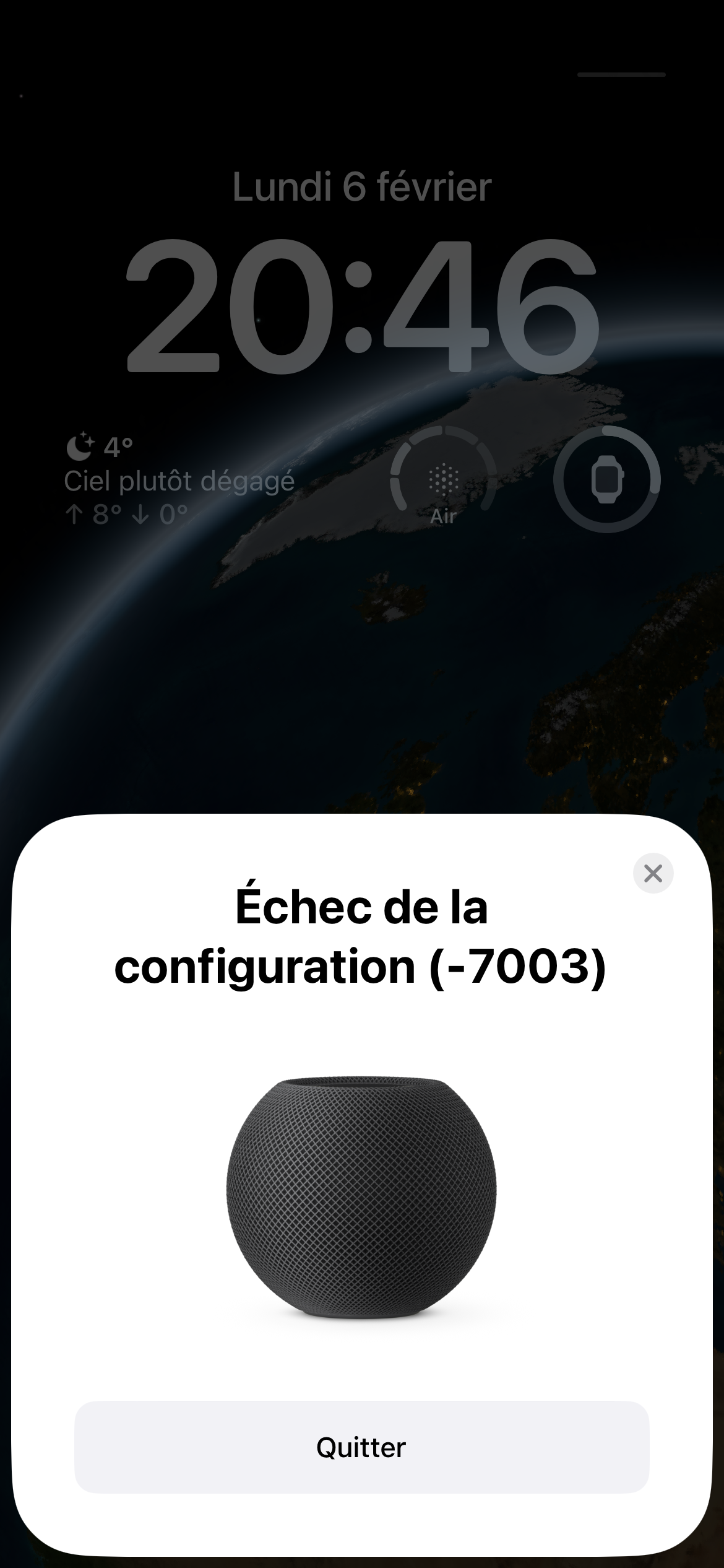 Configuration HomePod mini : échec de la configuration (-7006)