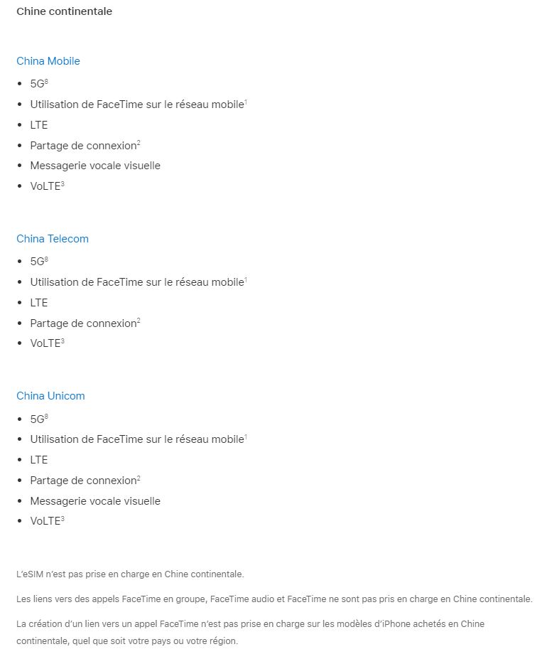 Mais autres différences? J'ai cru lire Facetime Audio et Appels Wifi desactives?!