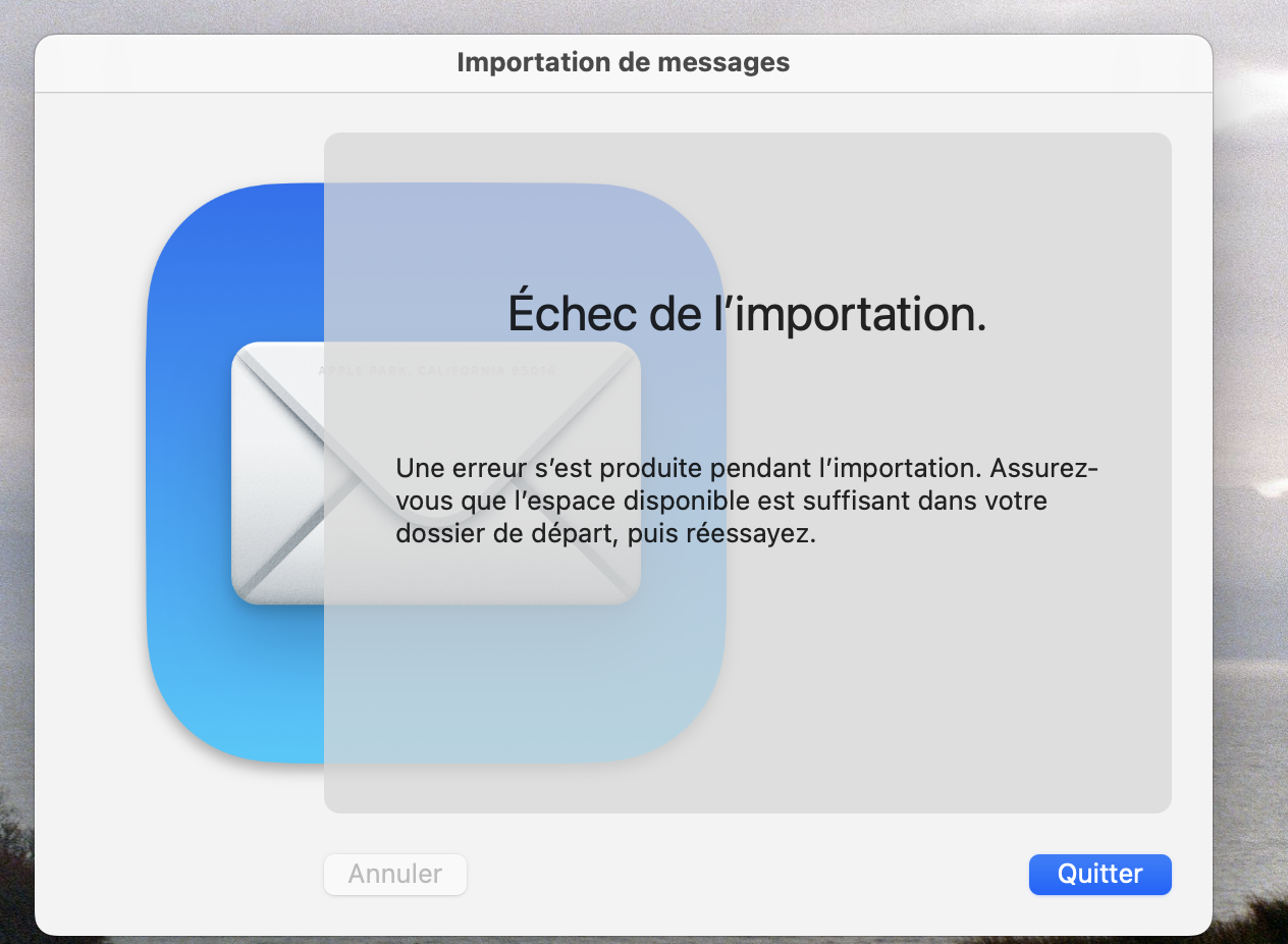 Échec de l'importation dans Mail Mac
