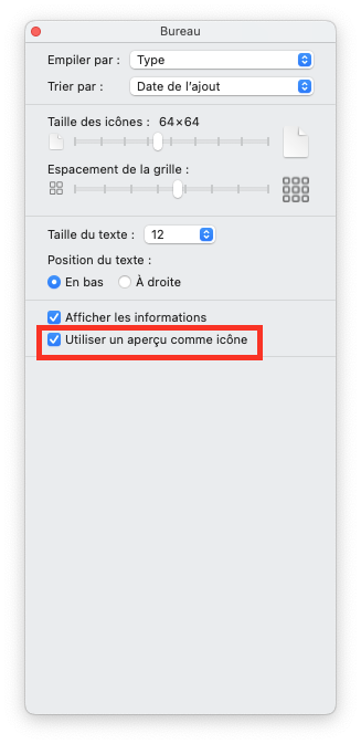 • dans la fenêtre qui s'ouvre, cochez la case "Utiliser un Aperçu comme icône"