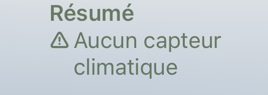 Bonsoir, voilà j’ai le résumé de l’application maison qui s’affiche sur mon iPad mais pas sur mon iPhone, « aucun capteur climatique »