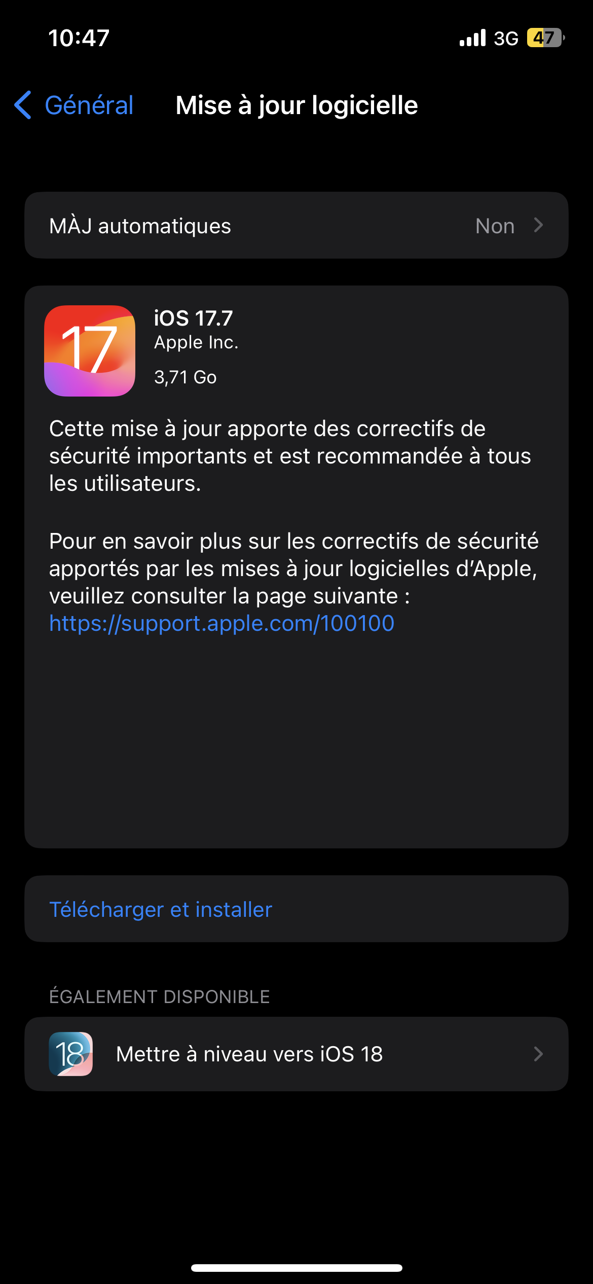 Bonjour, actuellement en iOS 16.6.1 , est ce que je dois commencer par mettre à jours vers IOS 17.7 d'abord ou ce n'est pas grave si j'upgrade direct en IOS 18 j'utilise un iphone 12